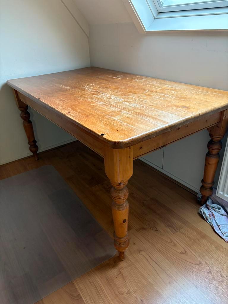 Mooie grenen eethoek tafel met afmetingen 160 cm lang, 85 cm breed en 77 cm hoog. Gebruikt, maar verder in goede staat. Even opnie
