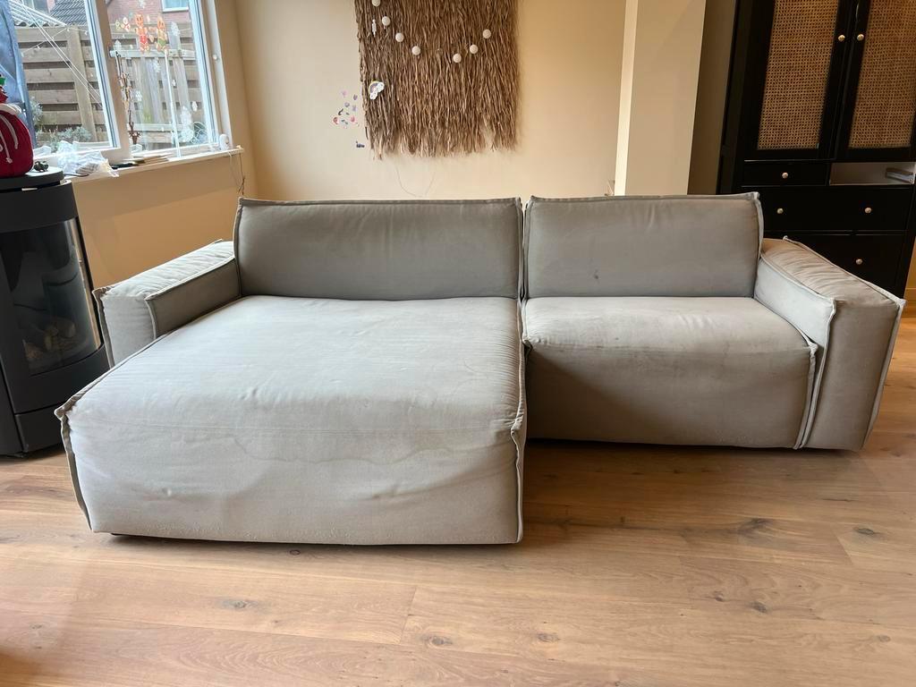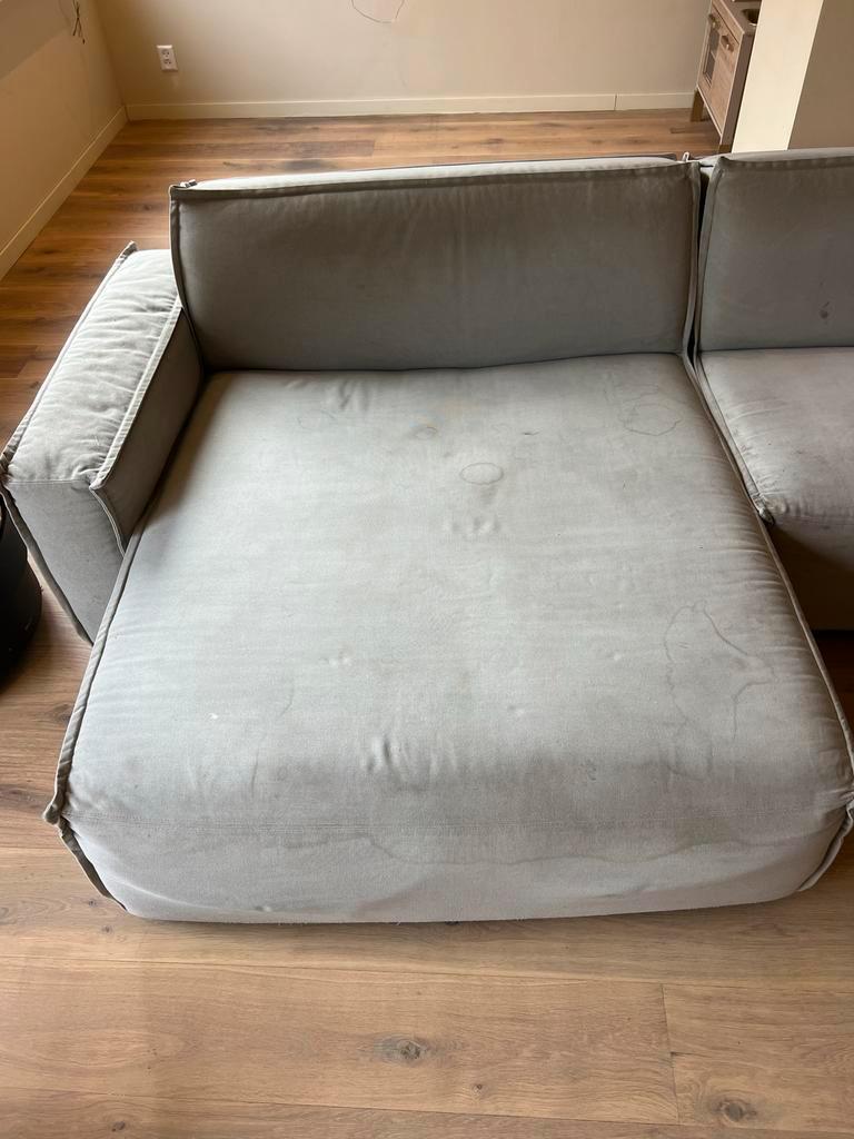 Gratis af te halen: grijze hoekbank brooklyn van leen bakker. Bestaat uit 3 elementen. Het deel dat nu los staat, past in het midd
