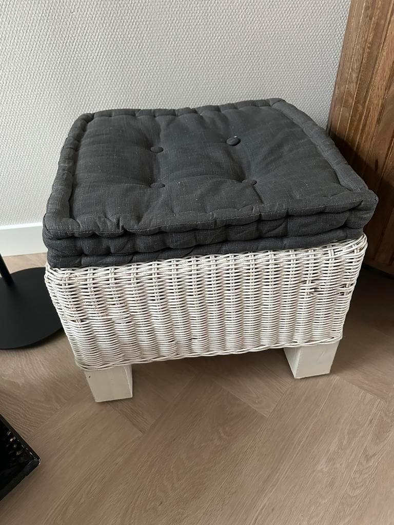 Rieten voetenbank of met een dienblad er op te gebruiken als bijzet tafeltje