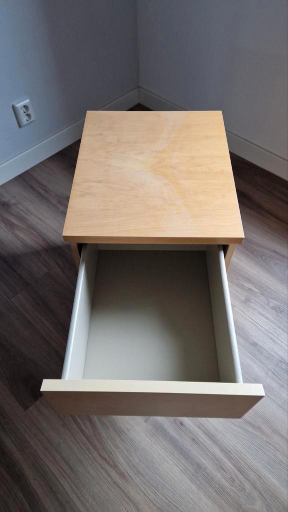 Ikea malm nachtkastje met twee lades. Het kastje is voorzien van wieltjes, waardoor het makkelijk te verplaatsen is. Het kastje is