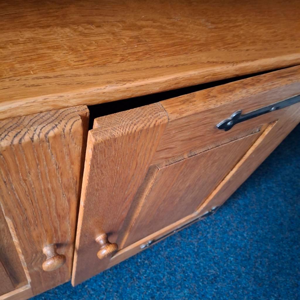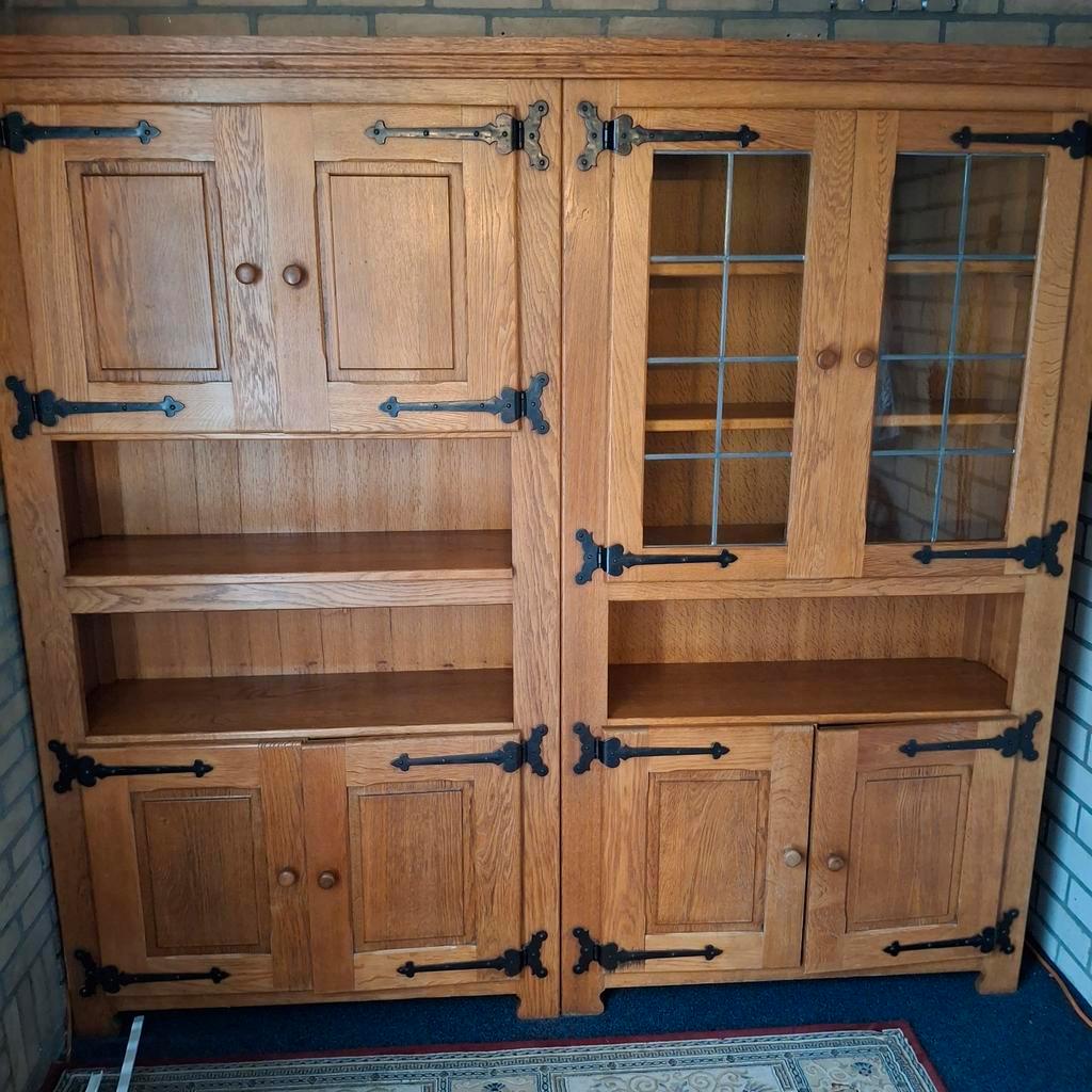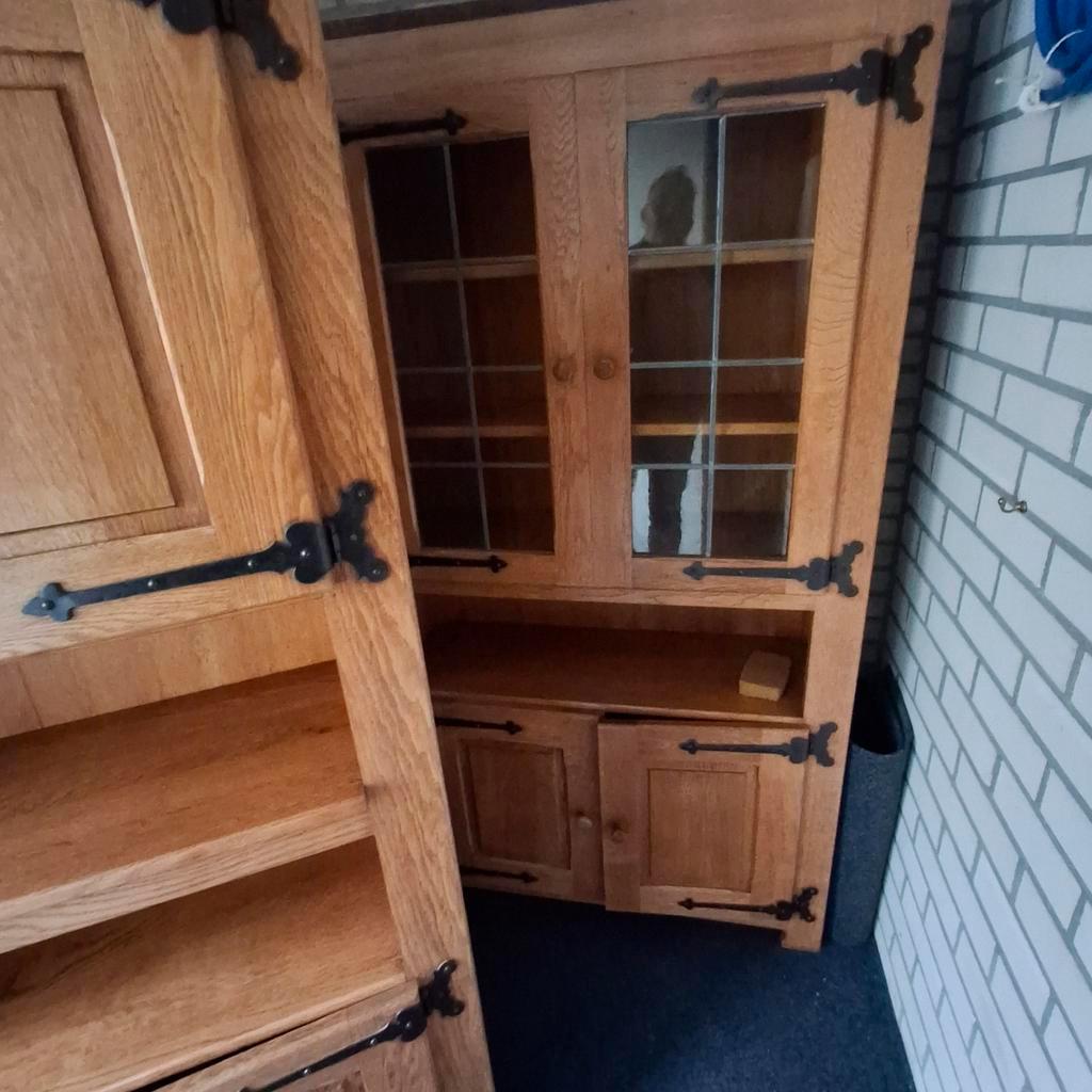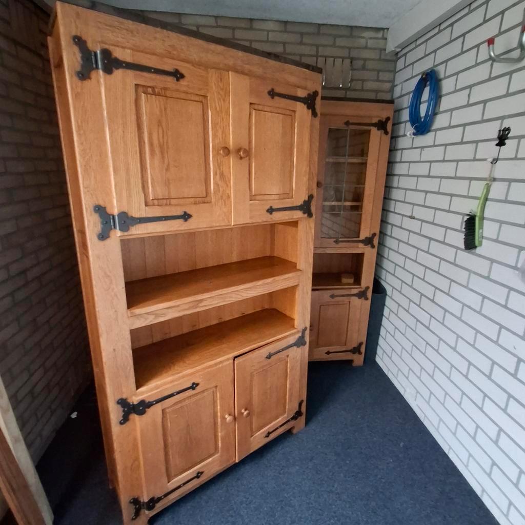 Houten berging/kast, gebruikt en deurtje even opnieuw inhangen. Ideaal voor het opbergen van spullen in de tuin of op het balkon.
