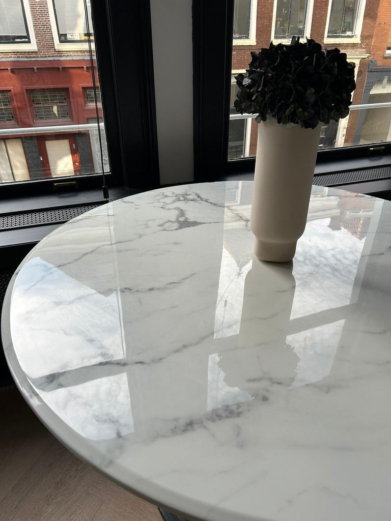 • english version below* titel: eettafel – marmeren blad met verstelbare voet beschrijving: elegante eettafel met een marmere