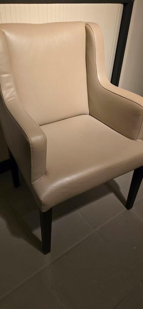 Set van 6 degelijke leren stoelen in goede staat, 4 stoelen in wit/beige en 2 stoelen in grijs. Zie foto''s. De stoelen zijn 55