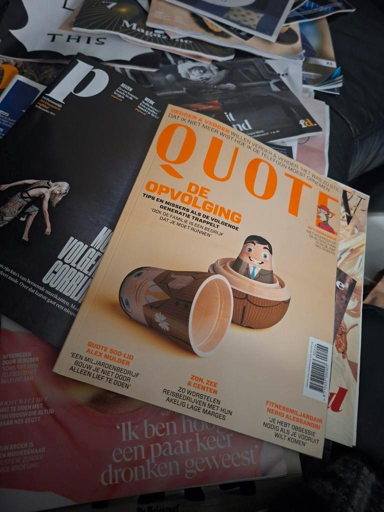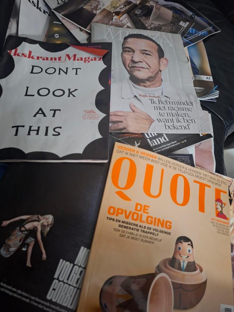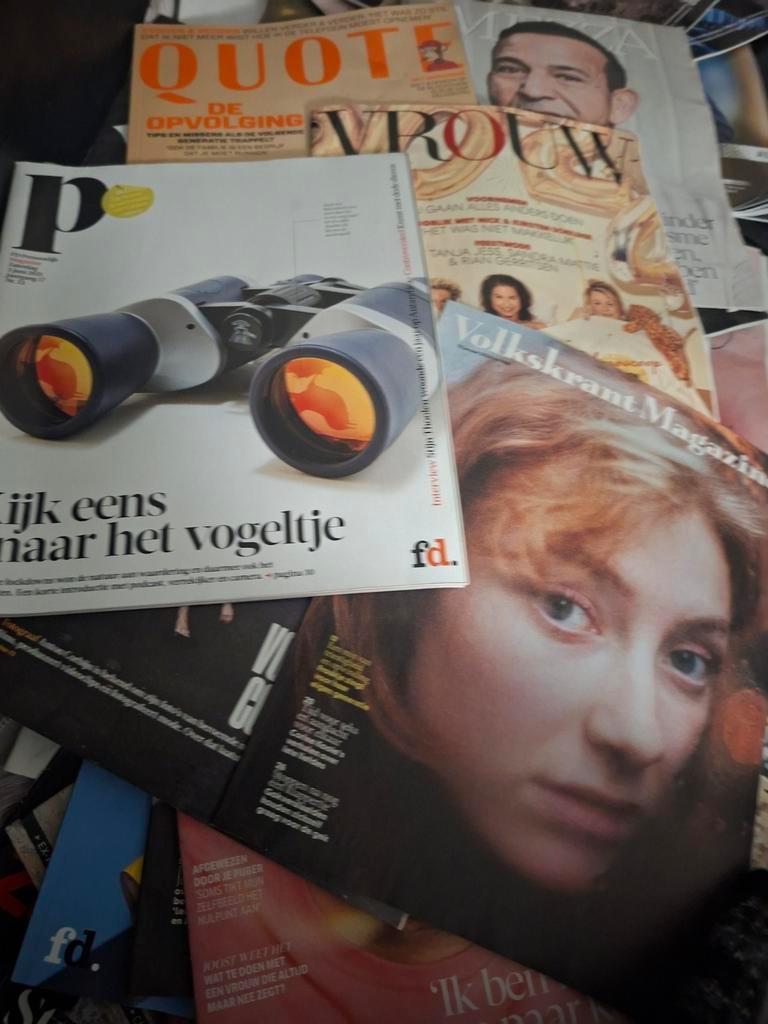 4 kratten vol tijdschriften:quote,vrouw, volkskrant magazine, mezza, fd persoonlijk,connect. Ze zijn niewe,één keer gelezen. Soduk