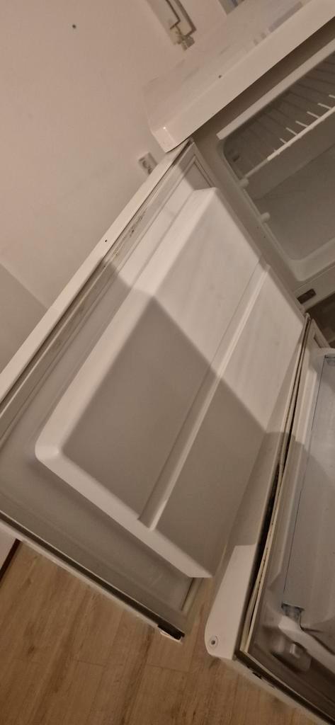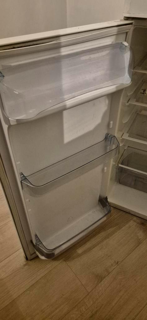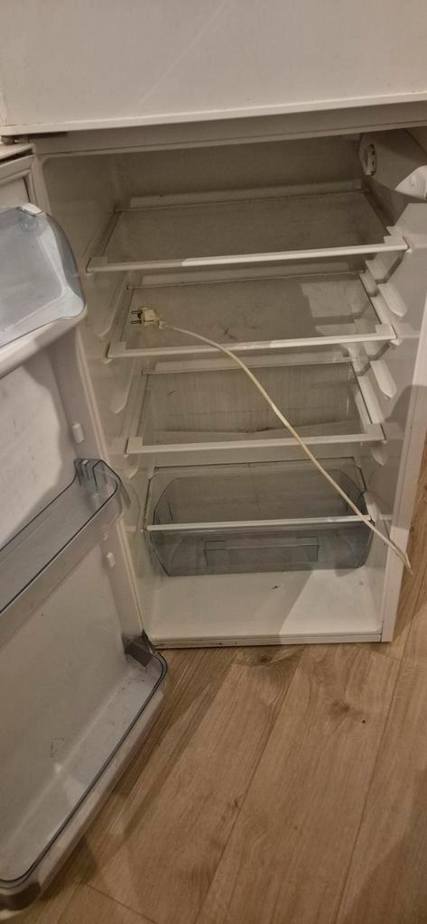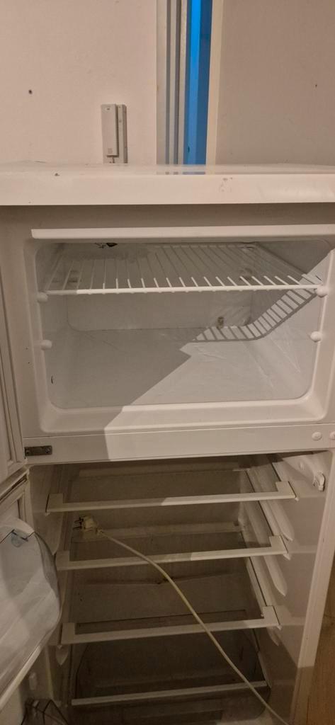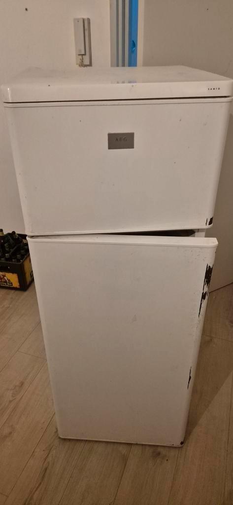 Gratis aeg koelkast beschikbaar om opgehaald te worden. De koelkast is gebruikt en heeft veel gebruikssporen, maar functioneert no