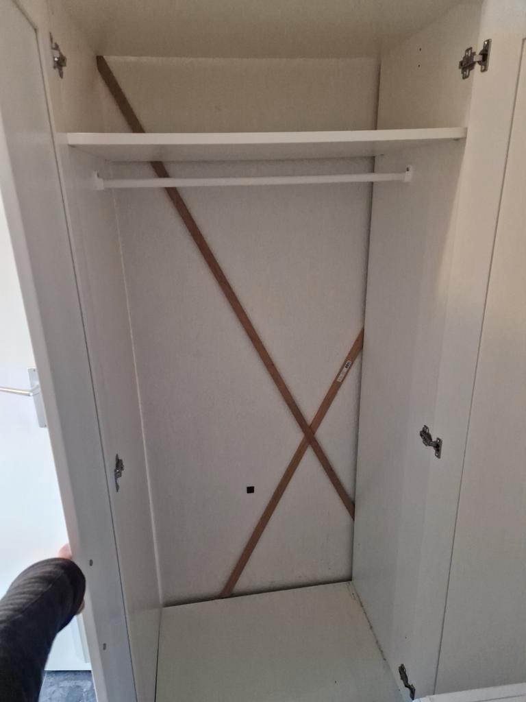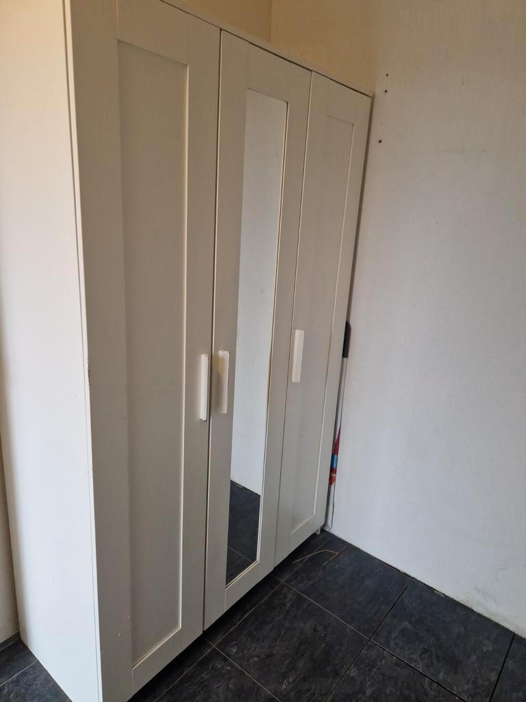Gratis witte kledingkast, tot 30 december. De kast is voorzien van hangruimte, planken en een spiegel. Ideaal voor extra opbergrui