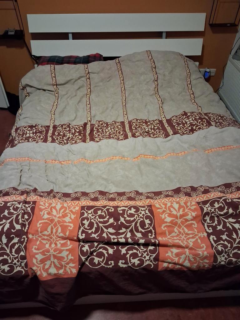 Mooie tweepersoons dekbedovertrek met een uniek patroon. De conditie is gebruikt, maar nog in goede staat. Kleuren zijn beige, bru