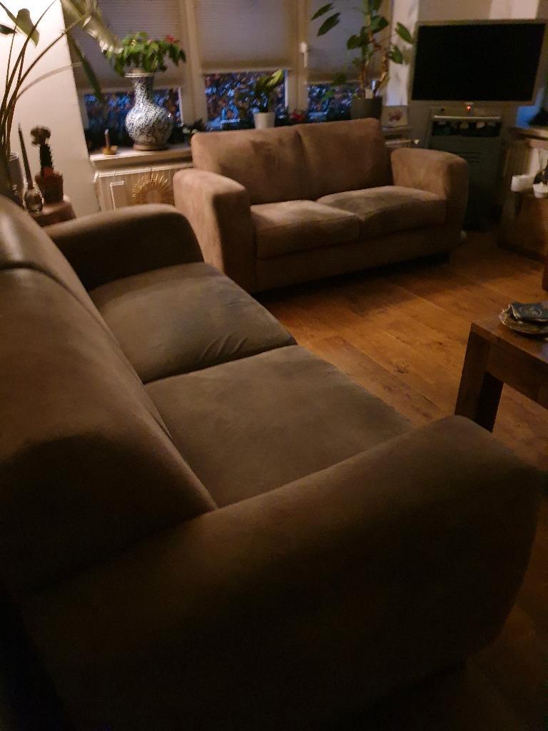 Bankstel bestaat uit een 3 zits (ong. 2,05 Br) en 2,5 zits (ong 1,75 br) bank. Het is gebruikt maar niet doorgezeten of versleten.