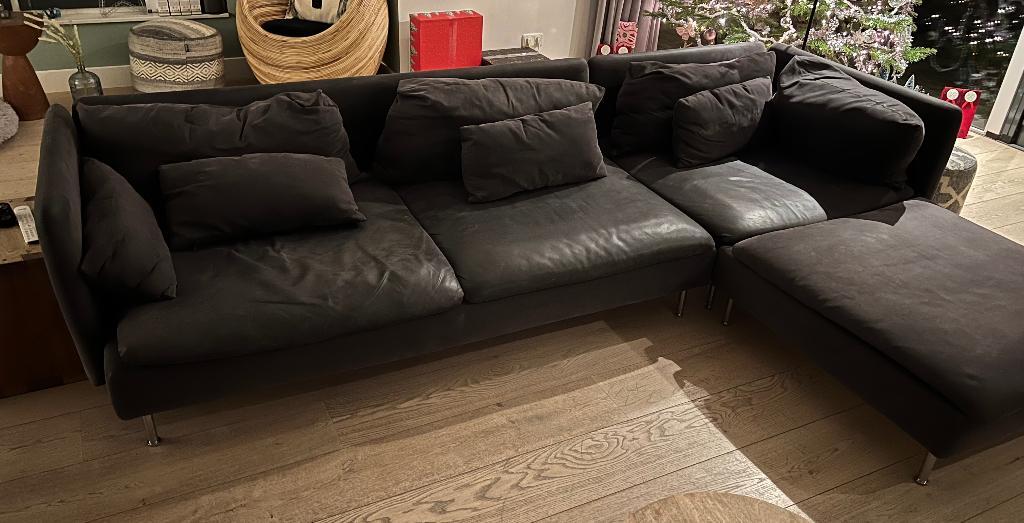 Ikea bank, type soderhamn, elementen bank kleur antraciet. Afmetingen totaal: hoogte ongeveer 68 cm diepte ongeveer 100cm/190 cm b