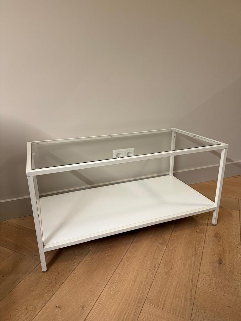 Witte salontafel van ikea, met glazen blad. Gratis op te halen
