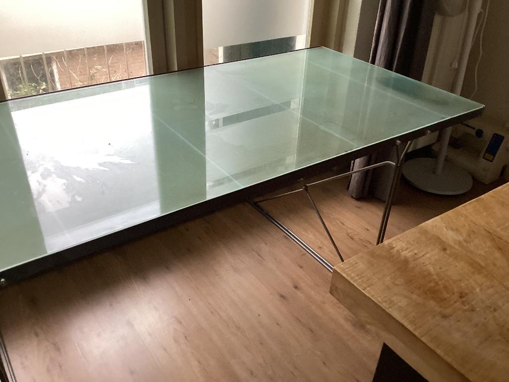 Glazen eettafel. Staat in de weg en mag gratis worden opgehaald