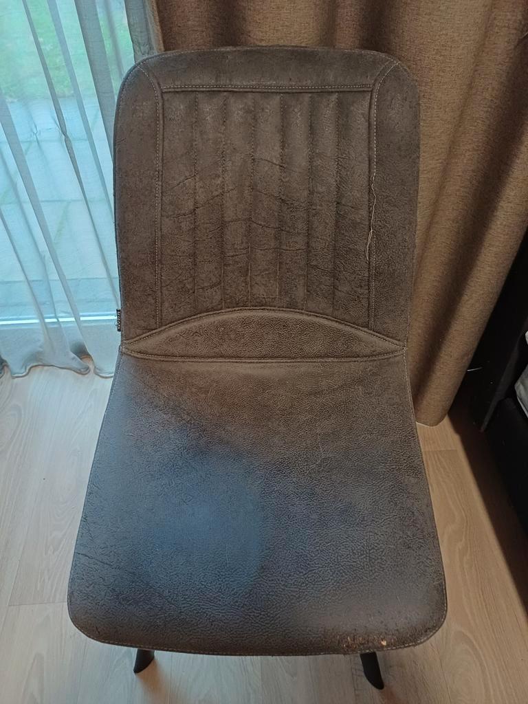 Grijze eetkamerstoel met een comfortabele zitting. De stoel is gebruikt, maar nog in goede staat. Ideaal voor in de eetkamer of ke