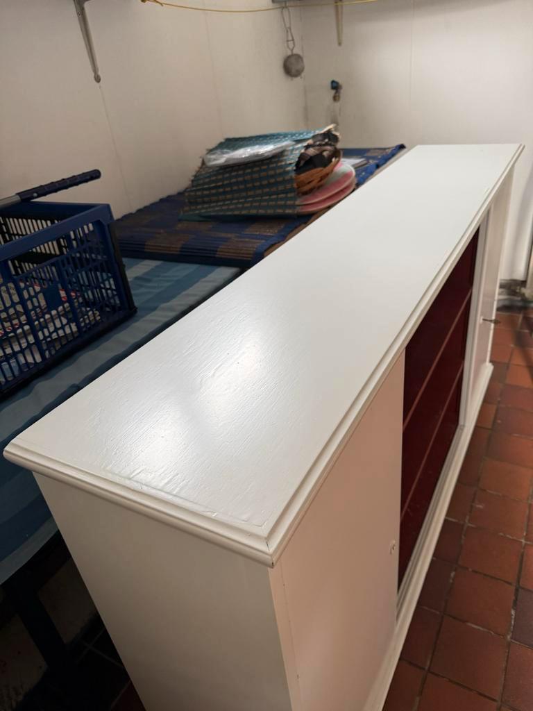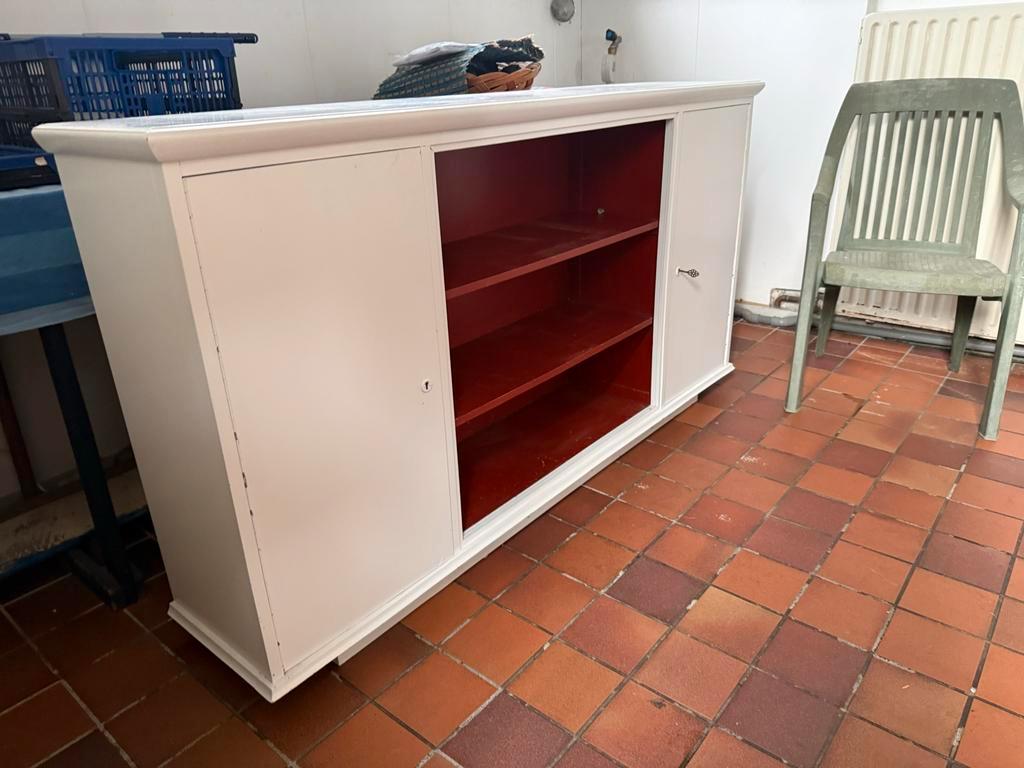 Mooie witte kast met deuren en planken. 170 Cm breed 34 cm diep en 92 cm hoog