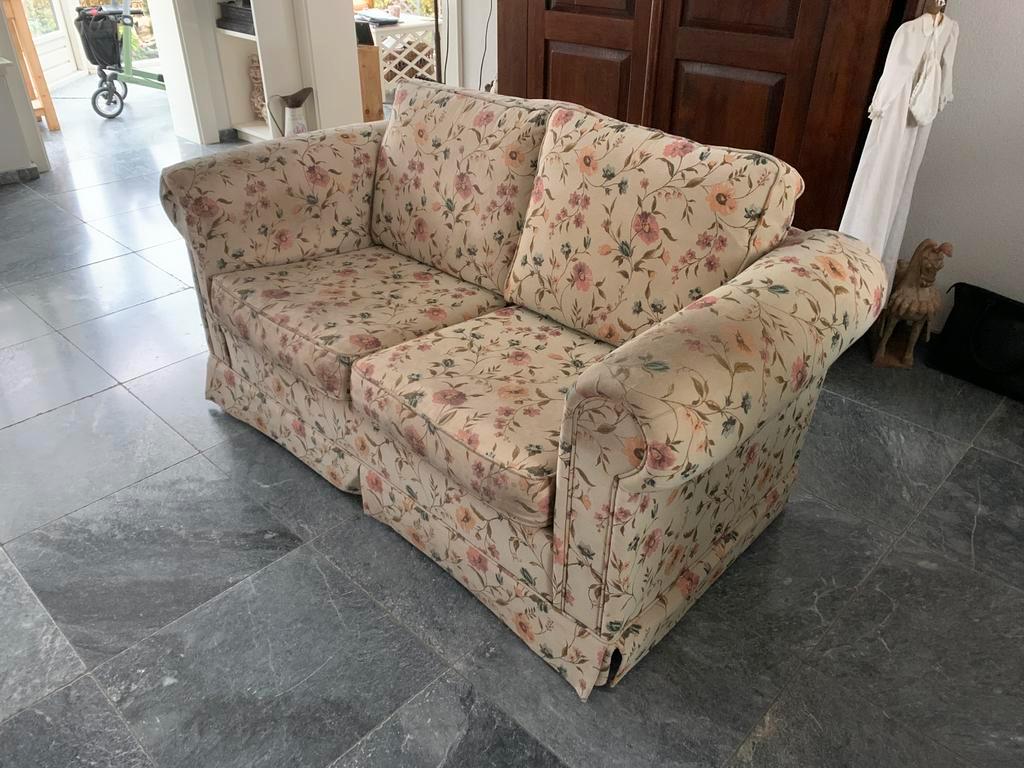 Gratis af te halen leuk 2 zit bankje van mijn schoonouders wegens aanschaf sta op stoelen zit nog goed over linker leuning zit nog