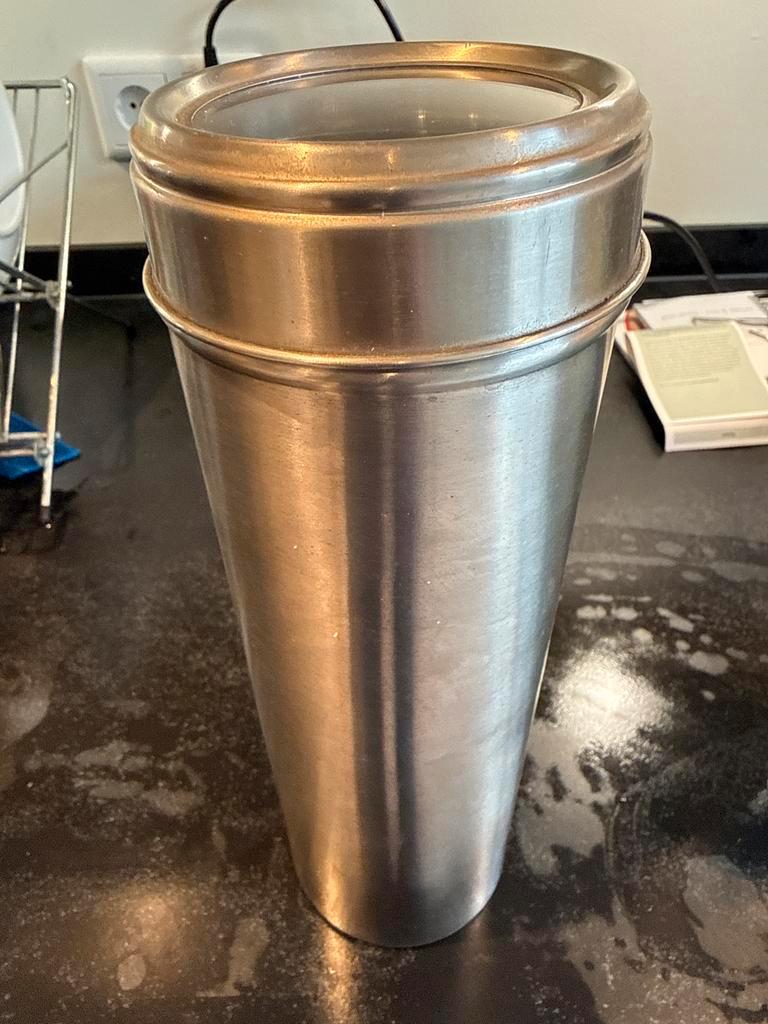 Metalen bewaarbus voor spaghetti. De bus is voorzien van een kunststof kijkvenster, zodat je makkelijk kunt zien hoeveel spaghetti