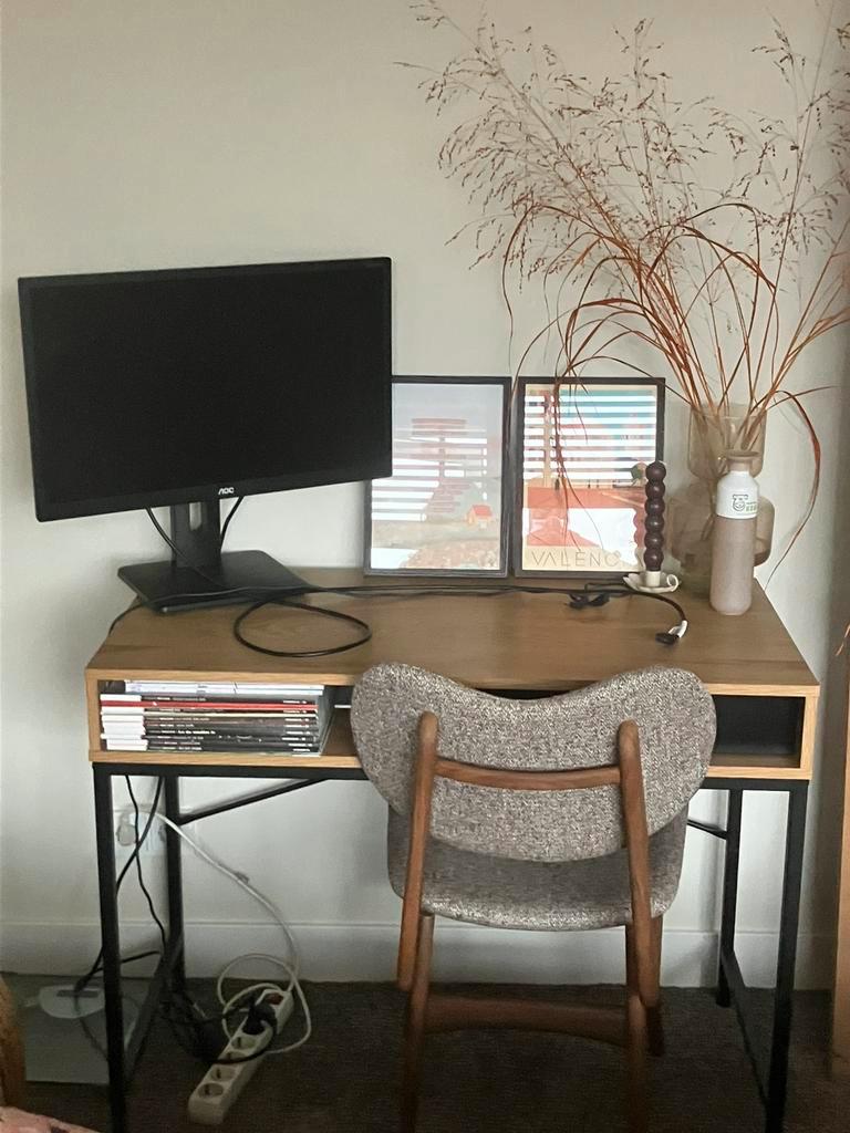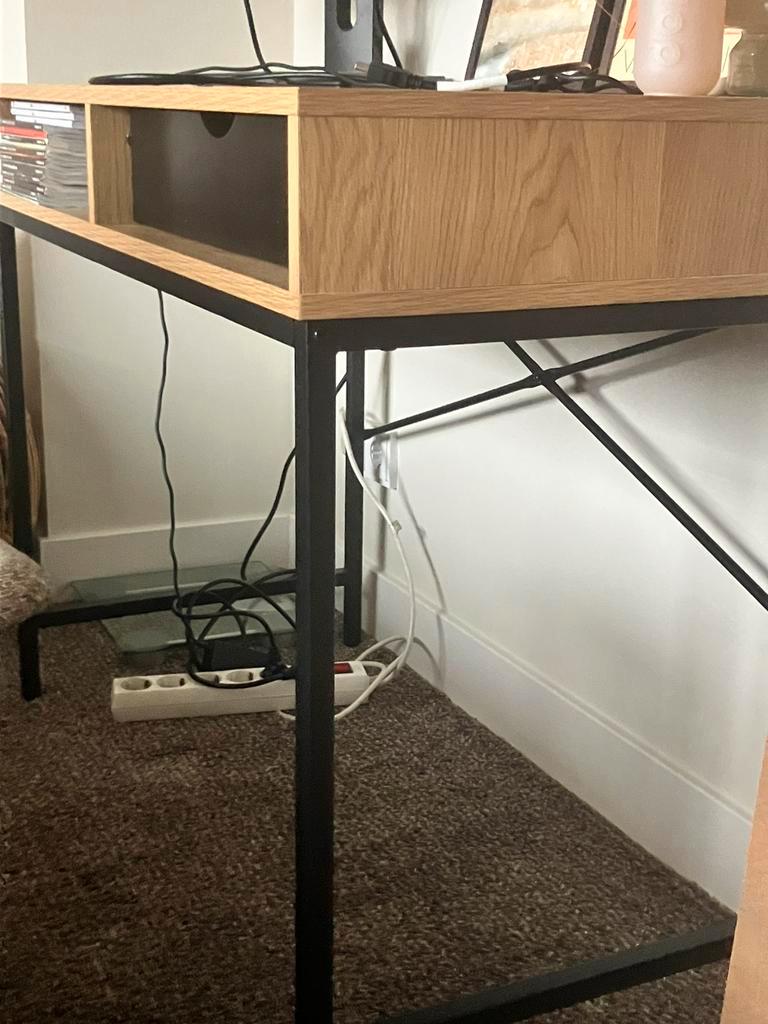 Leuk bureau met lade en vak. Blad krijg je niet meer helemaal schoon maar valt bijna niet op. Afmeting 95 breed 48 diep en 75 cm h