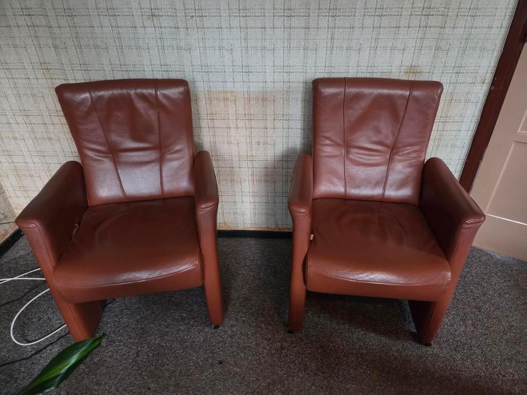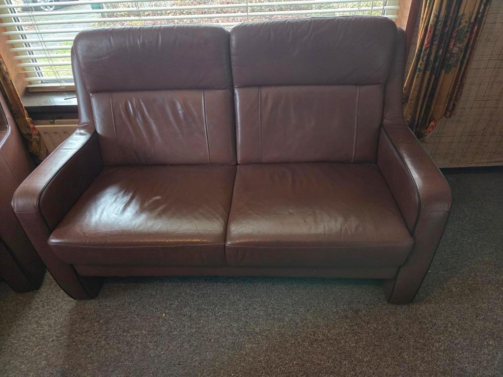 Ruime 2 zits bank van leder. Samen met 2 stoelen. Voor 1 krat bier gratis ophalen