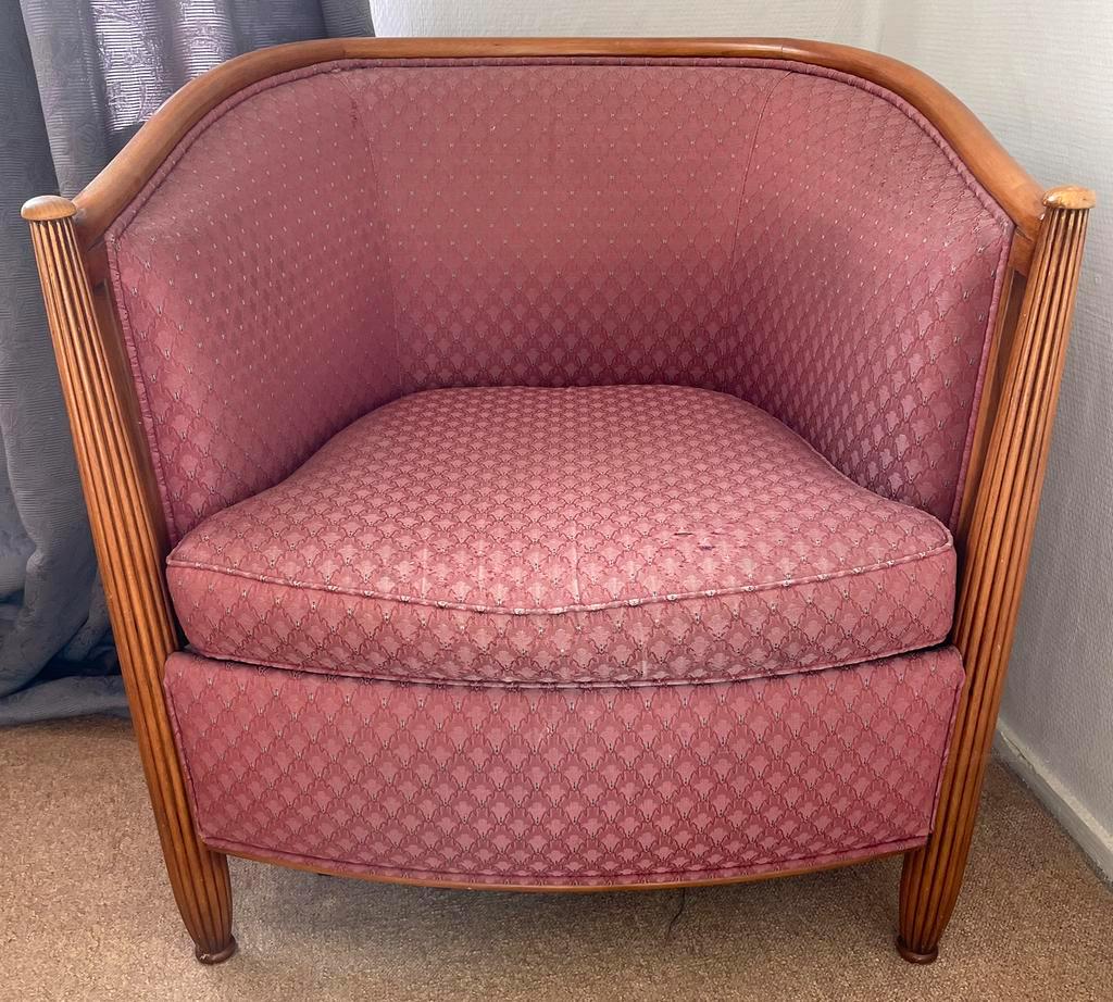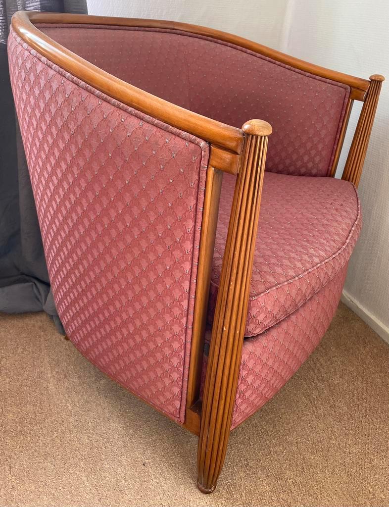 Art deco fauteuil in oud roze. Wegens huisontruiming gratis af te halen. Fauteuil vertoont enige slijtage aan onderzijde zitkussen