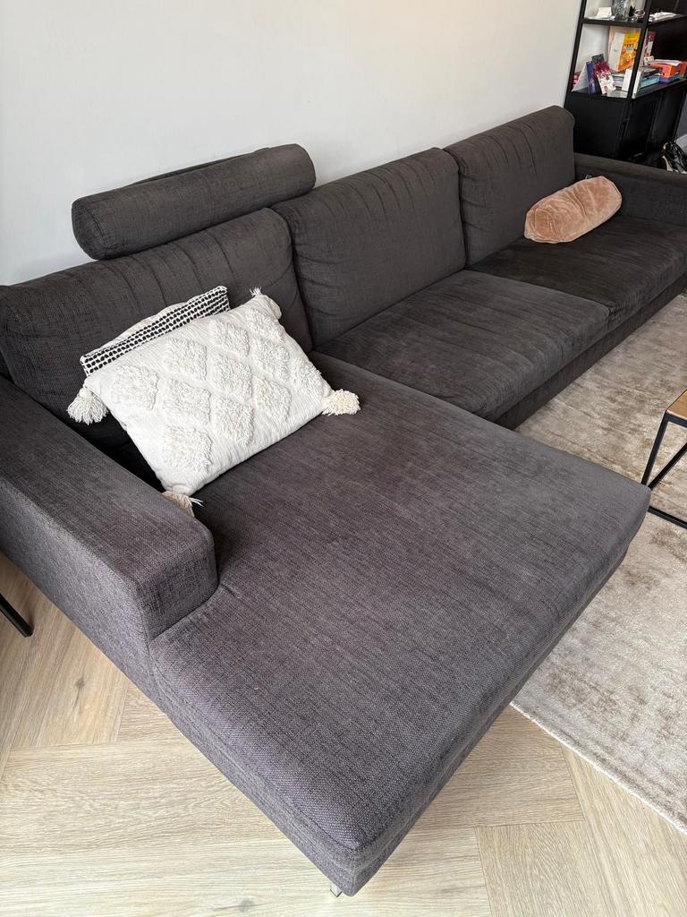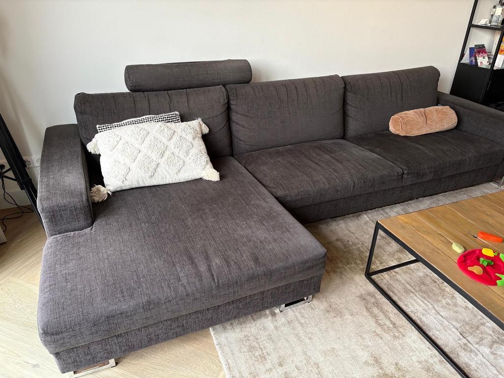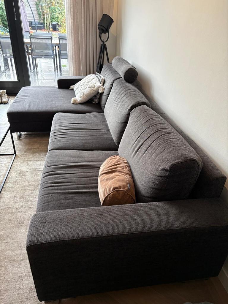 Grote antracietkleurige bank met chaise longue. De bank is 3.10 Meter breed en 1.00 Meter diep, de chaise longue is 1.55 Meter. De