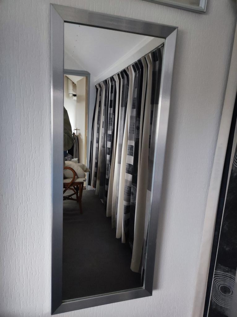 Vrijdag of zaterdag gratis af te halen: spiegel met een zilveren sieromlijsting. Afmetingen zijn 107 cm bij 42 cm.