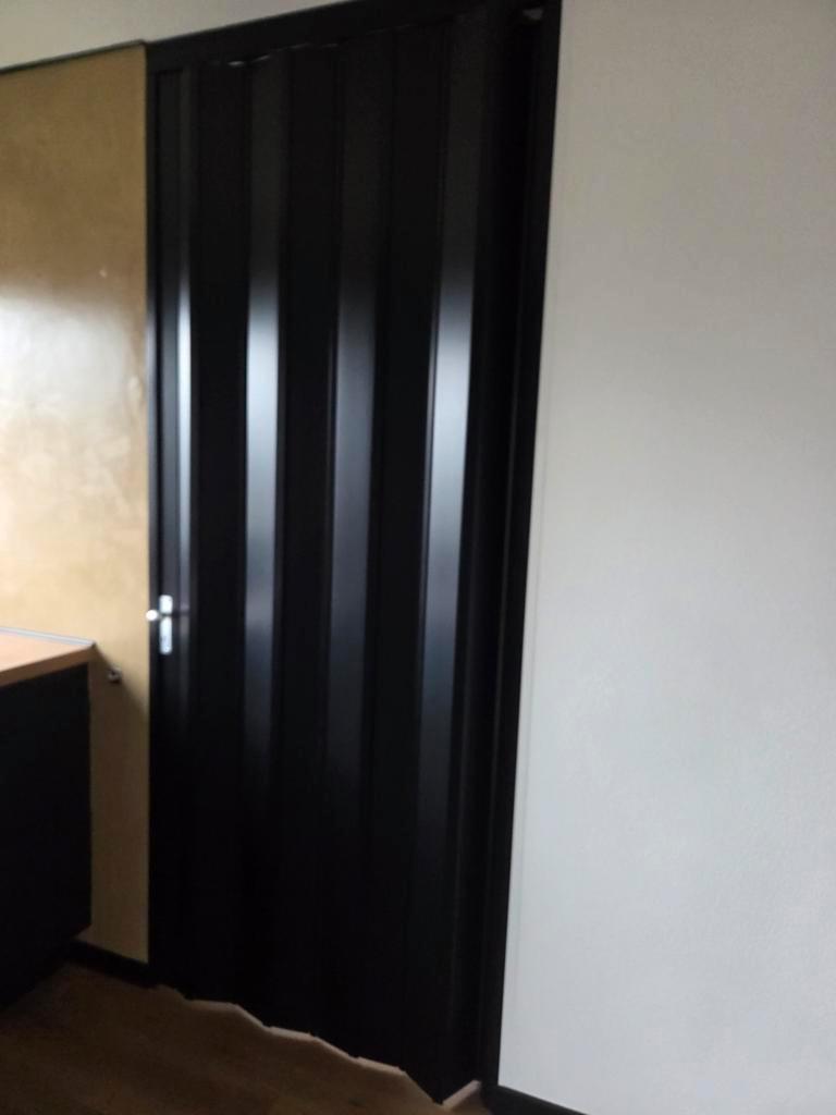 Harmonica vouwdeur. Kunststof zwart. 95 Cm tot 100 cm breed, hoog ongeveer 245 cm.