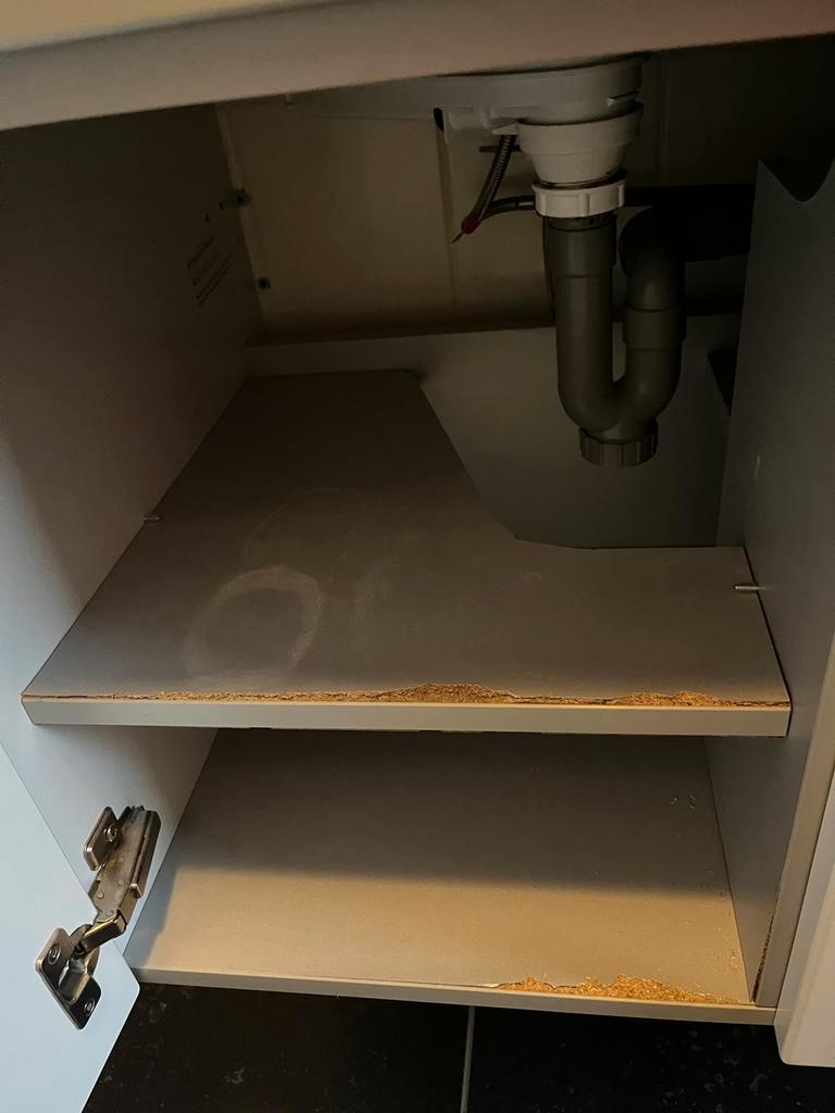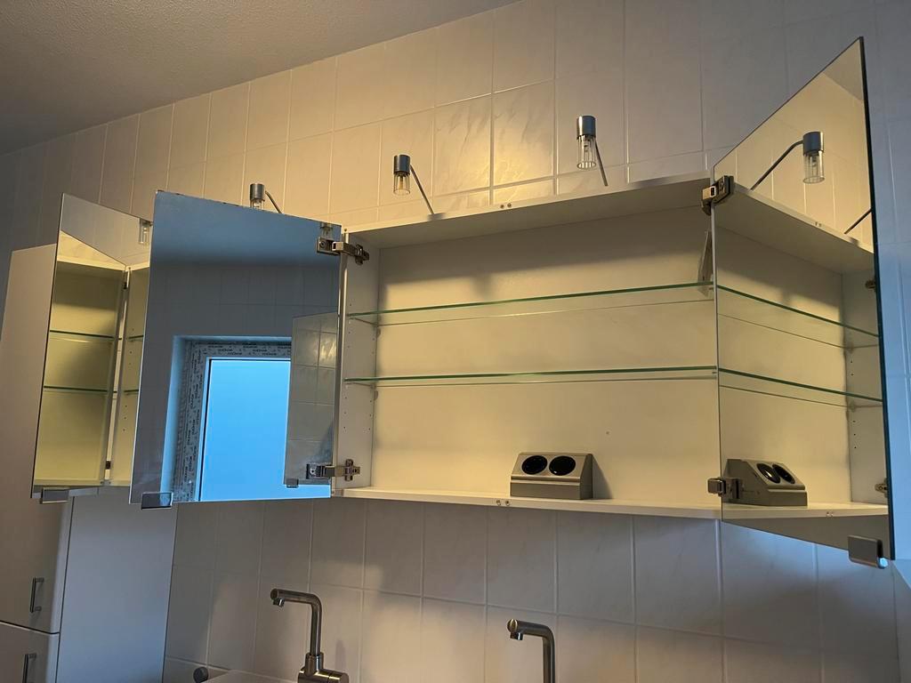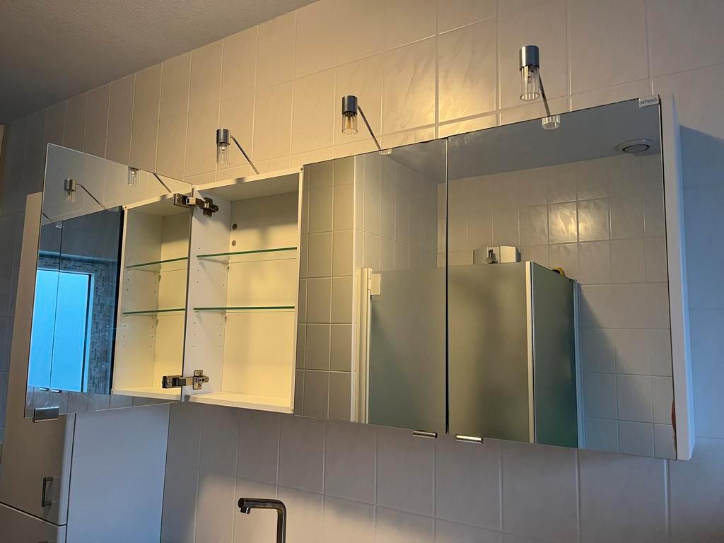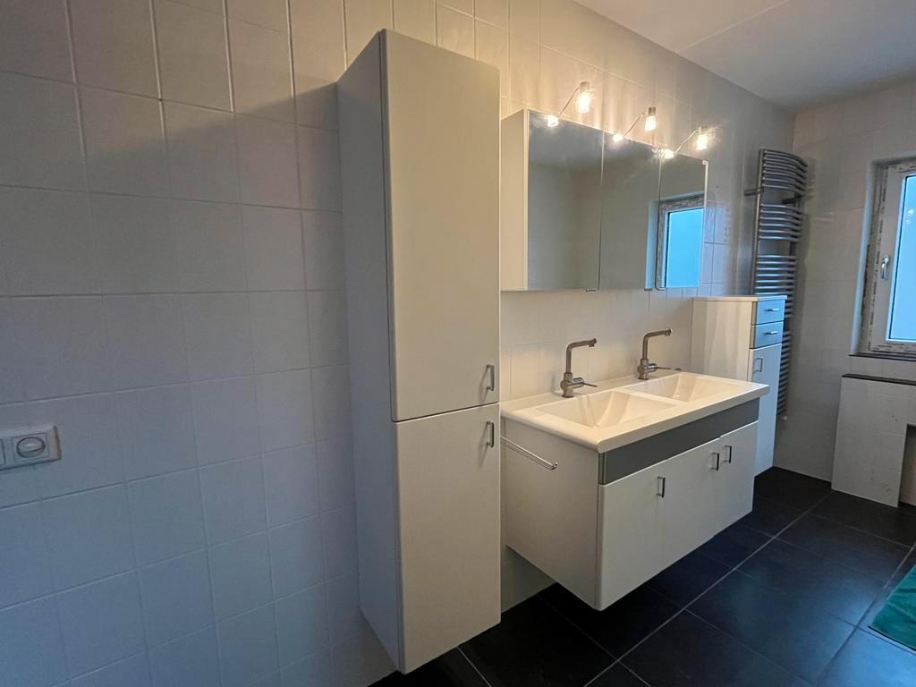 Complete badkamer meubel set bestaande uit een hoge kast, wasbak, wasbakkast, spiegelkast en een kleine kast met lades. De set is
