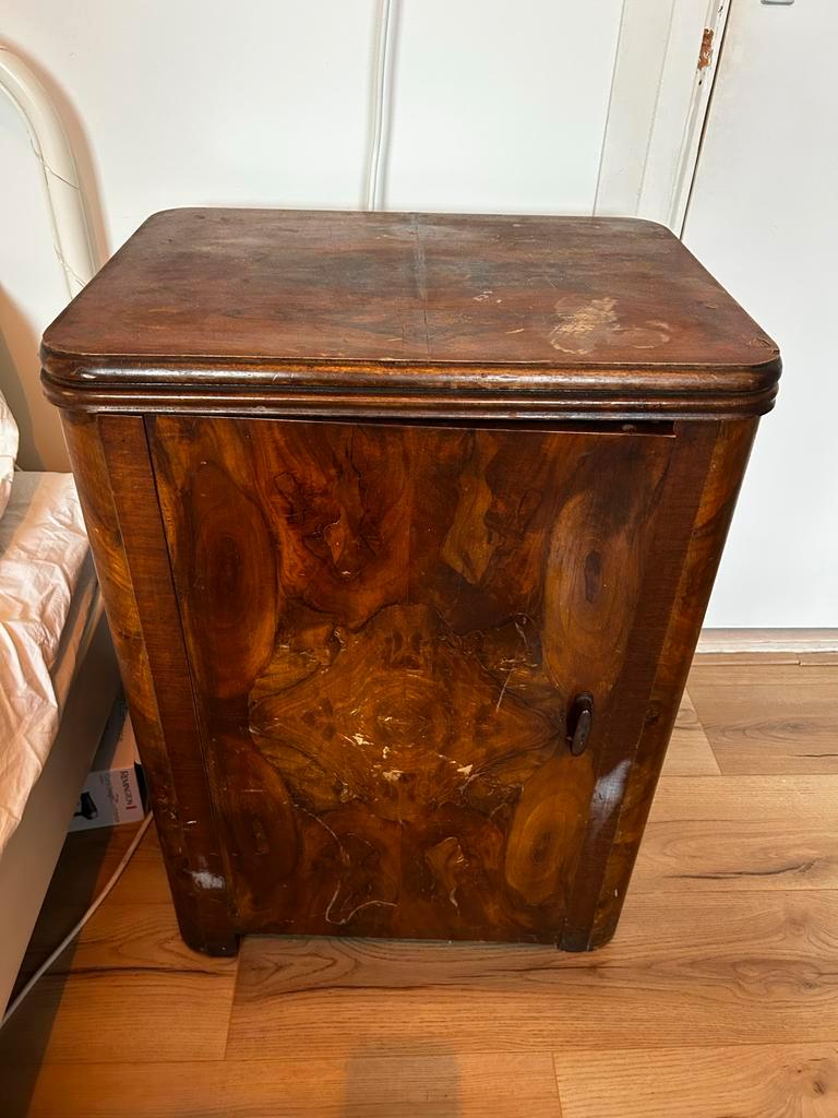 Charmant antiek kastje, oorspronkelijk bedoeld voor een naaimachine. Biedt verrassend veel opbergruimte achter de deur, ideaal om