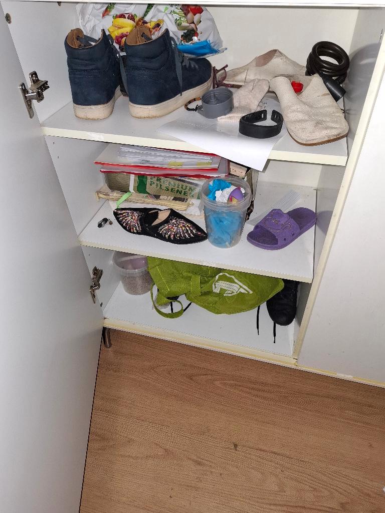 Gratis op te halen opbergkast, wij gebruikte hem voor spulletjes en schoenen. Heeft wel wat vlekjes, maar die zijn wellicht weg te