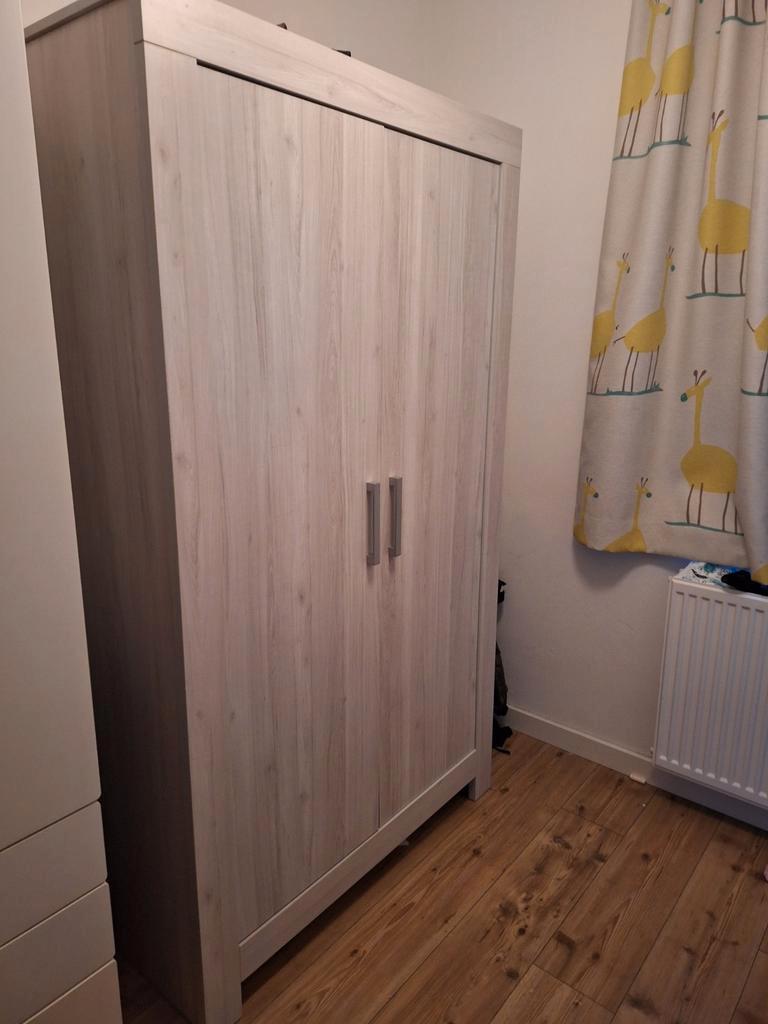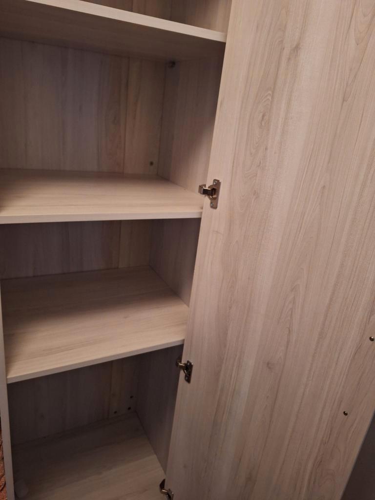 Gratis klerenkast beschikbaar om af te halen. De kast heeft deuren en planken en klein hang gedeelte.