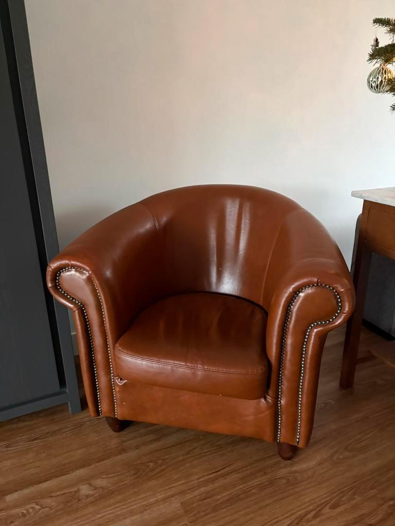 Leuke fauteuil in lederlook. Stoeltje zit heerlijk en is in goede staat. Mag gratis worden opgehaald vanwege verandering interieur