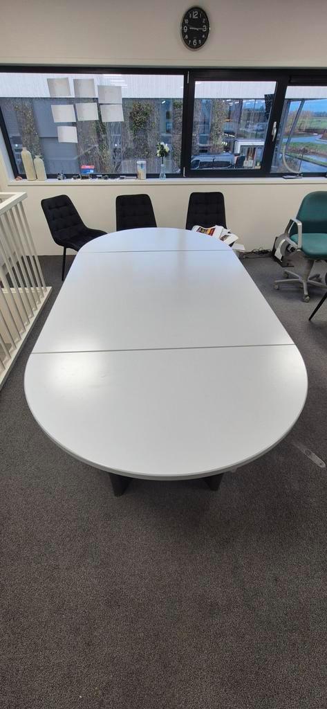 Witte vergadertafel in goede staat. Geschikt voor diverse doeleinden. De tafel is gebruikt maar in goede staat. 2.4Meter lang