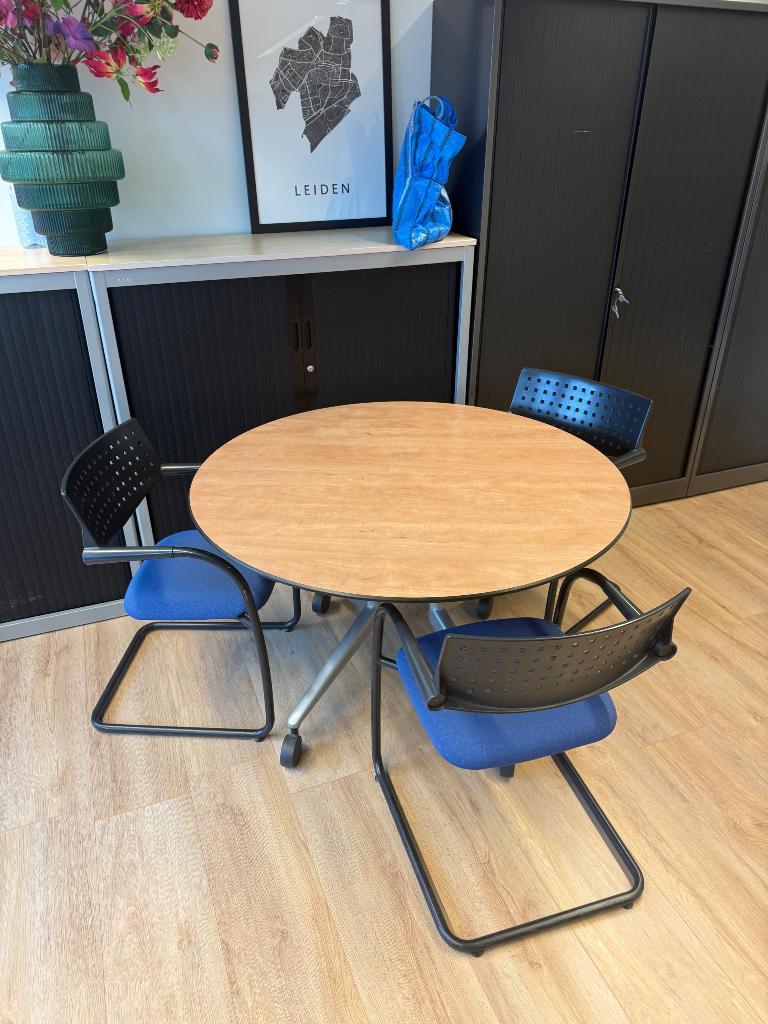 Deze ronde tafel met in totaal 4 stoelen (op de foto zijn er 3 te zien) is gratis op te halen in leiderdorp.