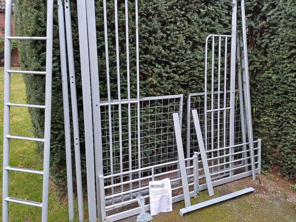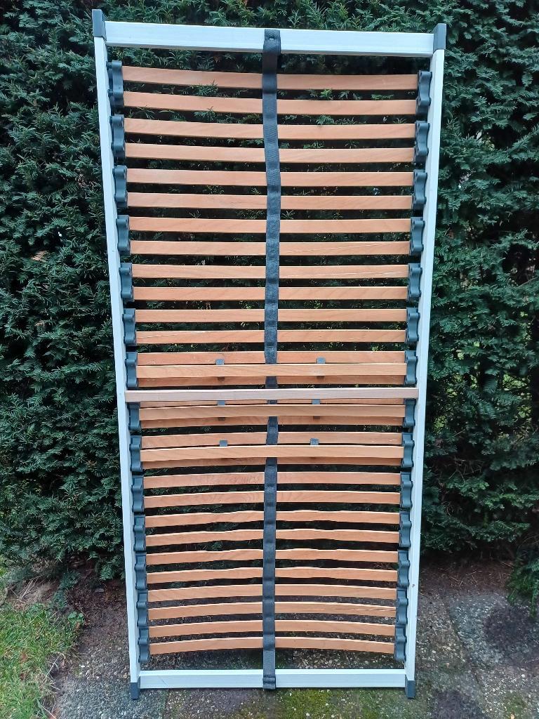 Gratis ophalen buitenkans: een prima hoogslaper met bijbehorende lattenbodem. Weinig gebruikt en in een uitstekende staat. Maat: 2