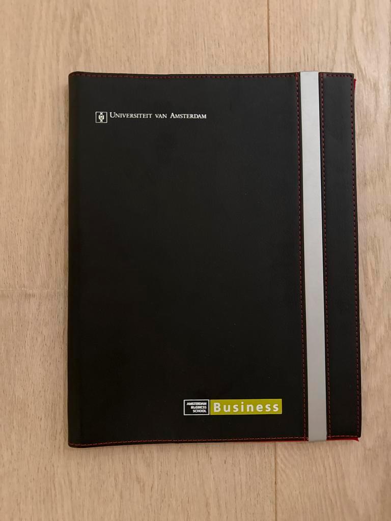 Mooie zwarte folder van de universiteit van amsterdam. Ideaal voor het opbergen van documenten en notities. In goede staat.