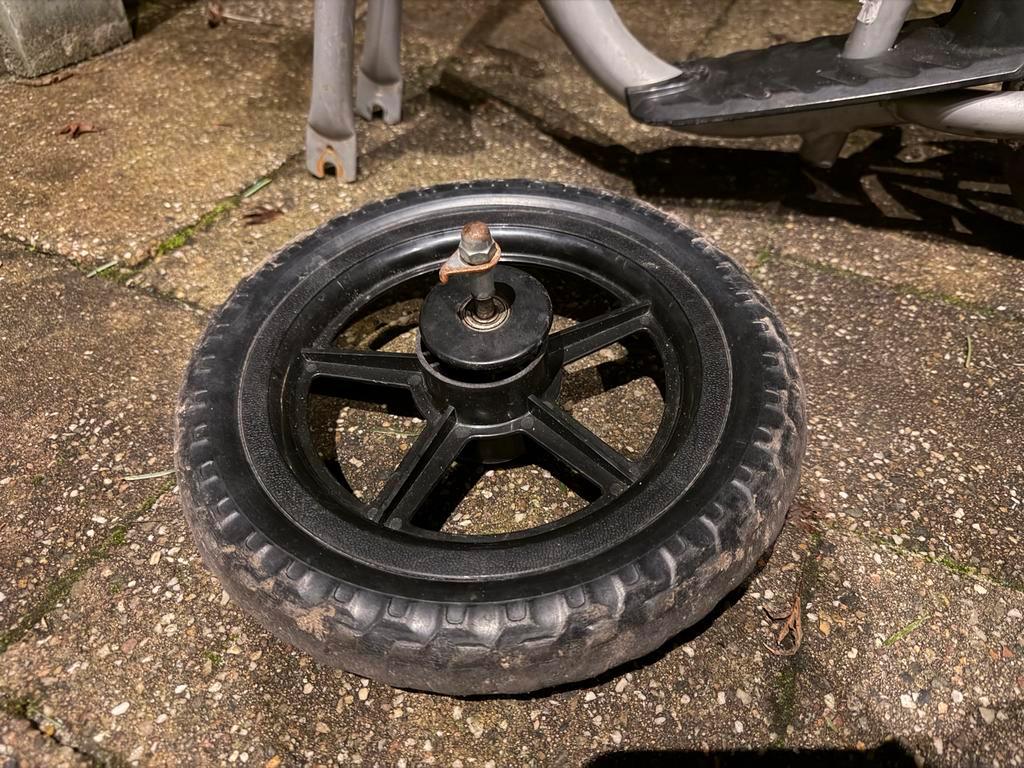 Grijze loopfiets van het merk easy rider waar onze kinderen heel veel plezier van heeft gehad. Van het wiel zijn twee onderdelen v