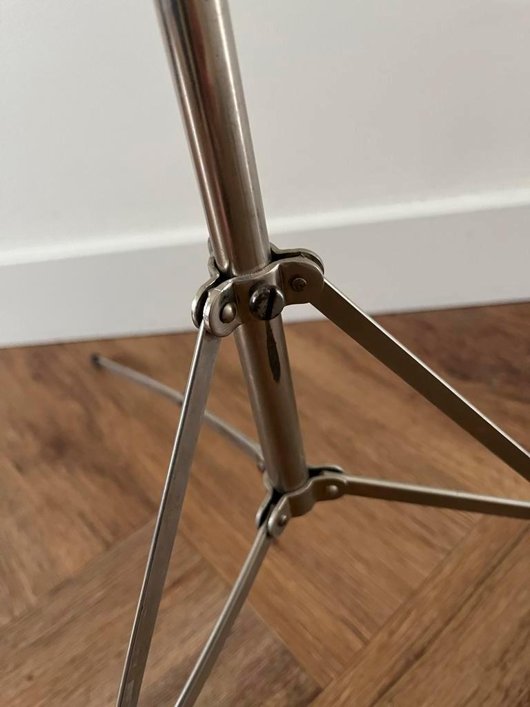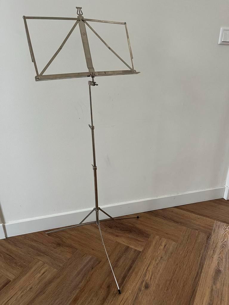 Gebruikte muziekstandaard. De standaard is nog prima te gebruiken, maar het onderste gedeelte is niet meer inklapbaar en zit vast