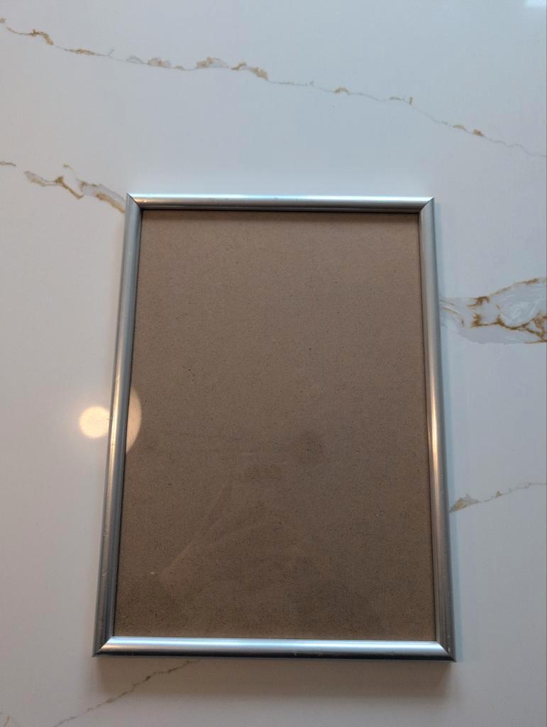 Zilverkleurige fotolijst en donkerblauwe. Geschikt voor foto''s of prints. Afmetingen: zilver = 31 x 22 cm. Blauw = 31 x 43 cm. Gratis ophalen in h