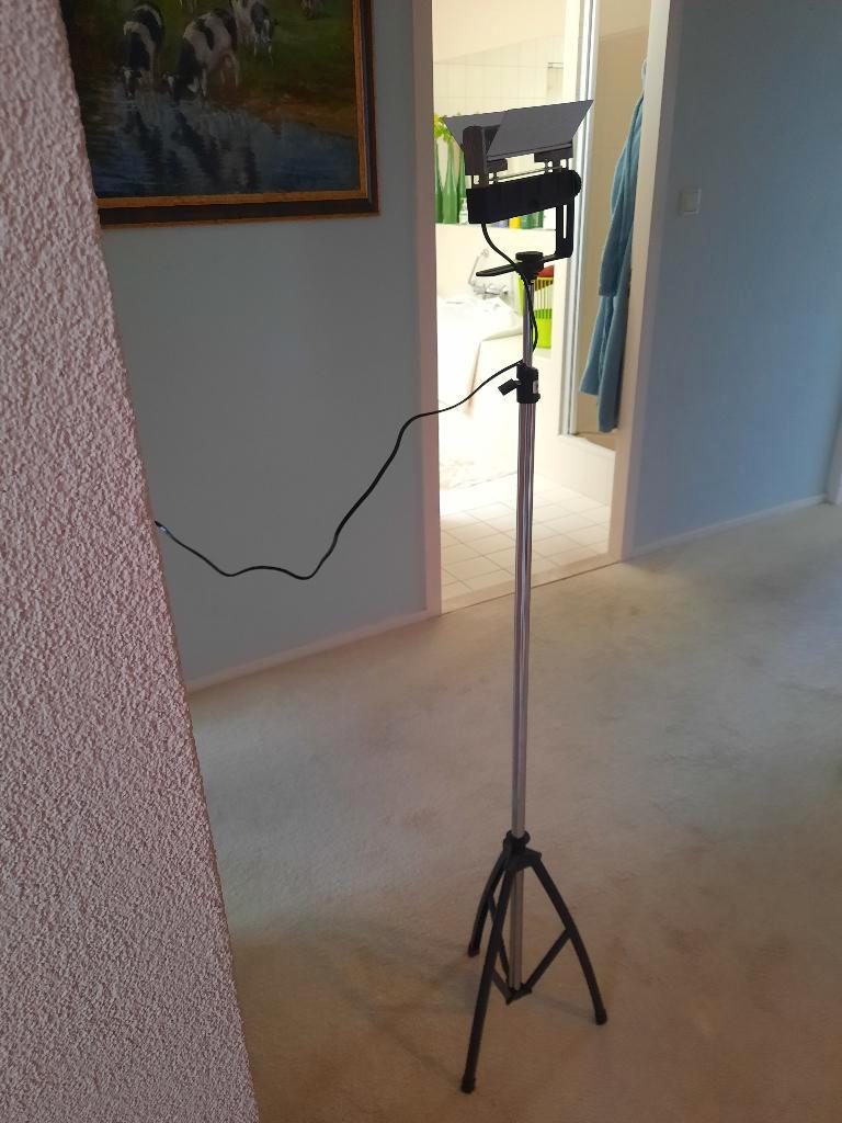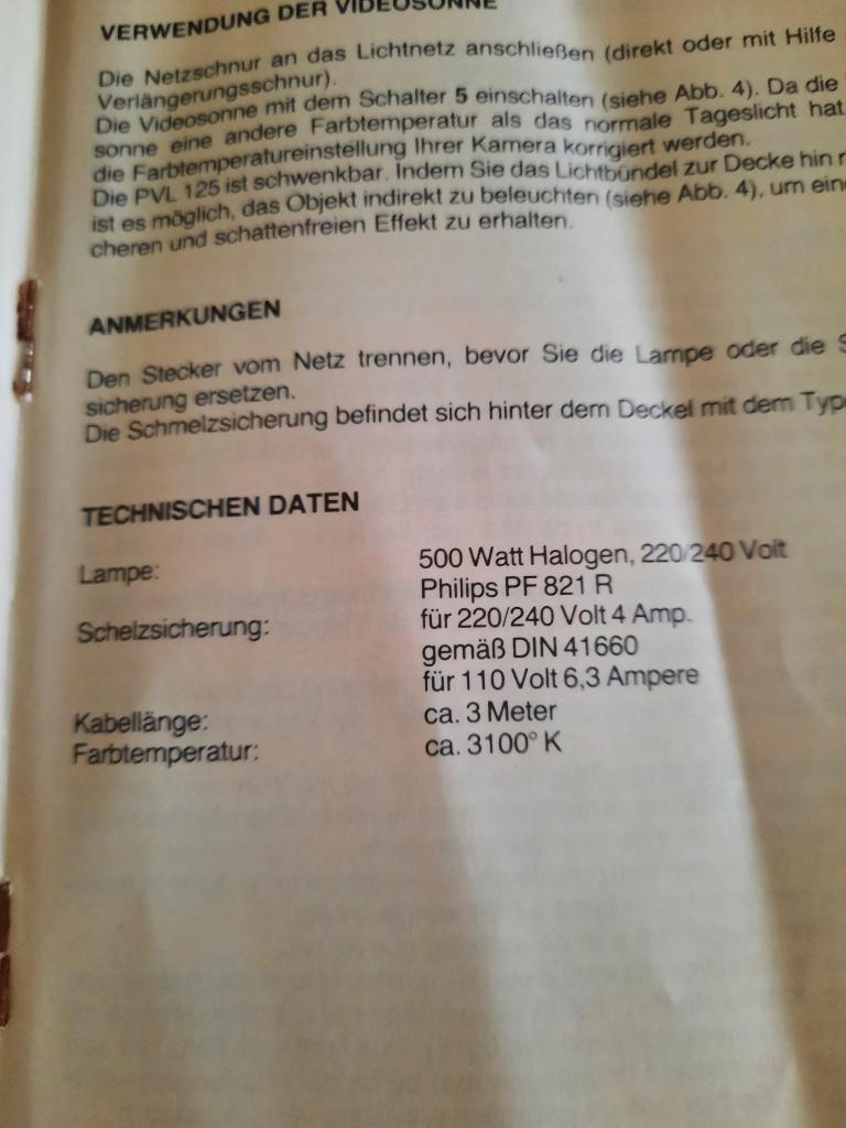 Goede video lamp met standaard van 120 cm tot 200 cm. Kabellengte 3 meter. Philips pvl 125 huidige lampbuis is defect.