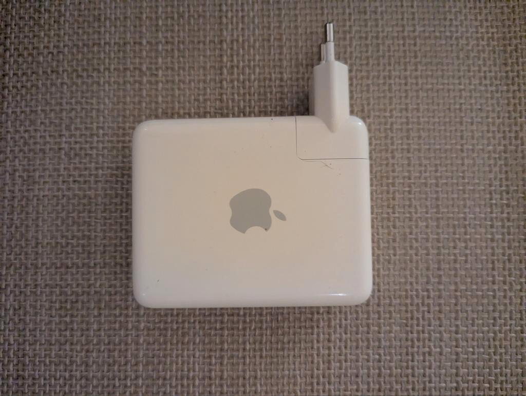 Apple airport express eerste generatie. Het apparaat werkt niet meer, het groene lampje blijft knipperen. Mogelijk geschikt voor reparatie of onderdel