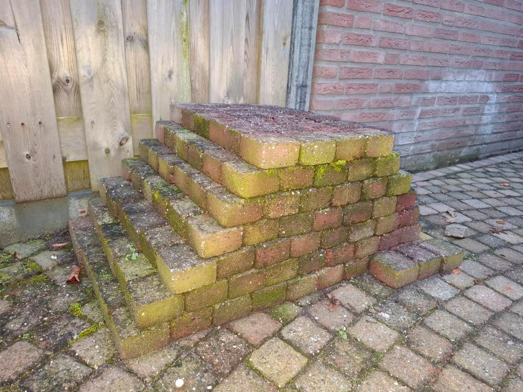 Gratis op te halen, stenen van (ongeveer) 10 x 10 x 5,5 centimeter. 297 Stuks goed voor een oppervlakte van +/- 3m²