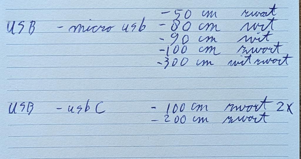 Gratis op te halen, hier overbodig. Usb naar micro usb: 50cm zwart 80cm wit 90cm zwart 100cm zwart 300cm wit/zwart usb naar usb c: 100cm zwart - 2x 20