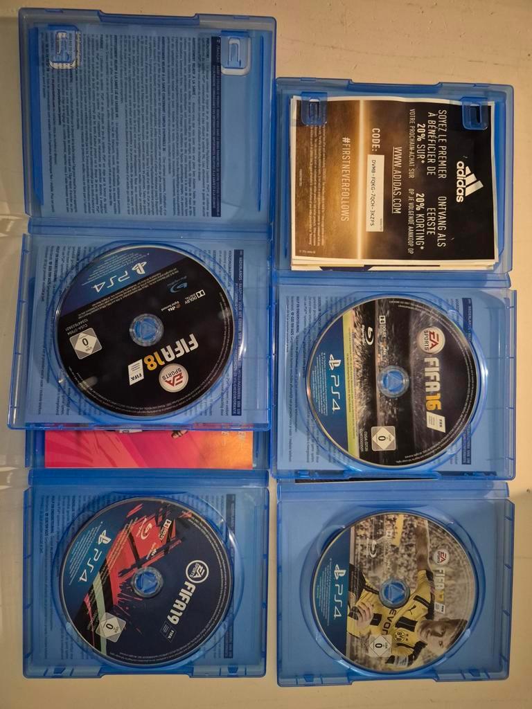 Gratis 1 uitzoeken bij 1 van mijn andere artikelen of te koop in 1 bundel. 4X fifa ps4 spelletjes. Fifa 16, 17, 18 en 19. Welk kindje (of volwassenen) wordt hier blij van? Ze zijn in gebruikte, maar n
