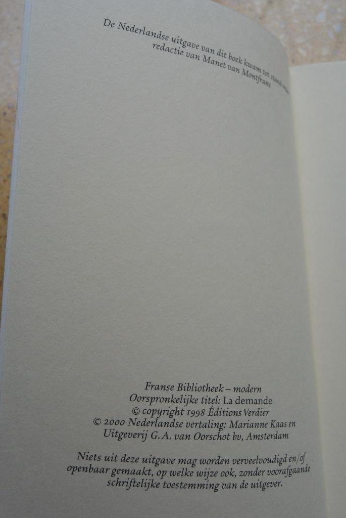 Het verzoek door: michèle desbordes vertaald uit het frans, frankrijk uitgeverij g.a. Van oorschot isbn 9789028250642 in goede staat, lichtverkleuring op de band, dun boekje gratis (exclusief eventuel
