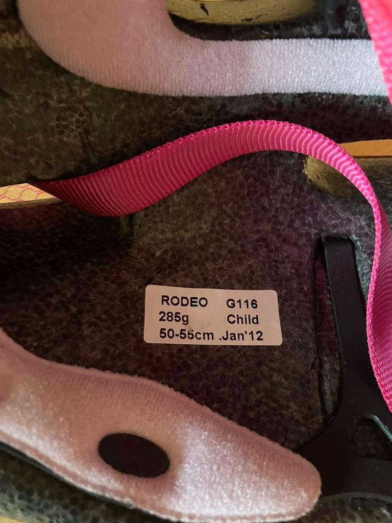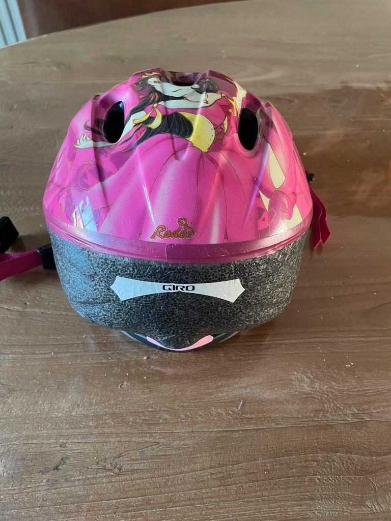 Onbeschadigde fietshelm 50-56 cm hoofdomtrek. Roze met prinsessen