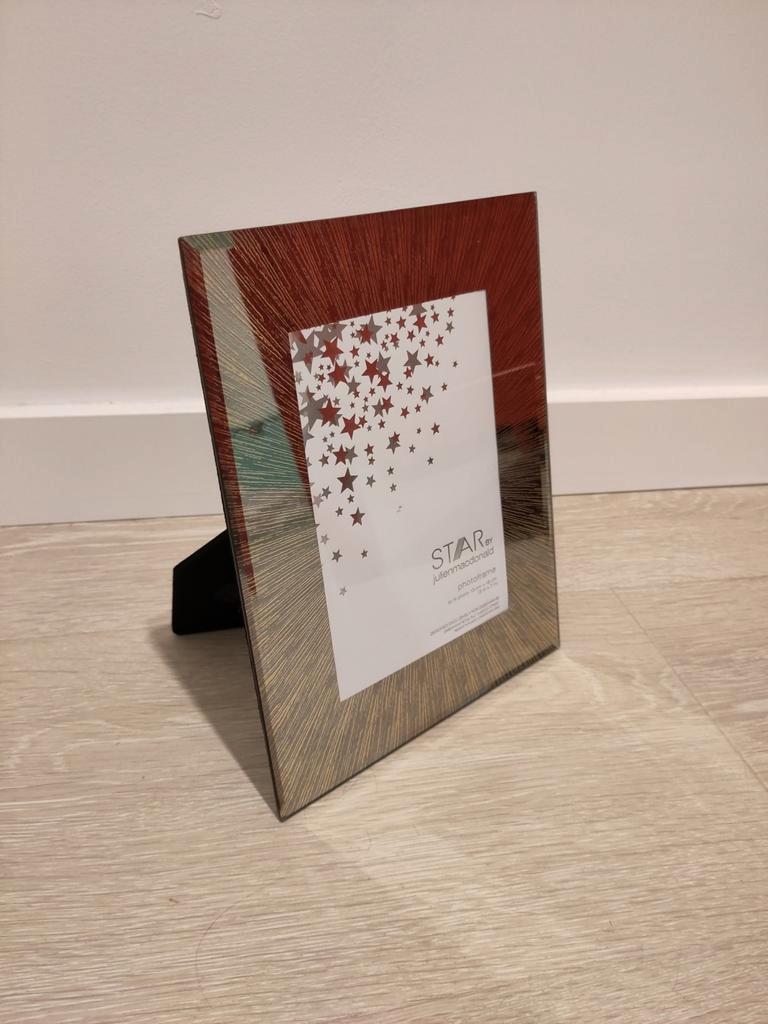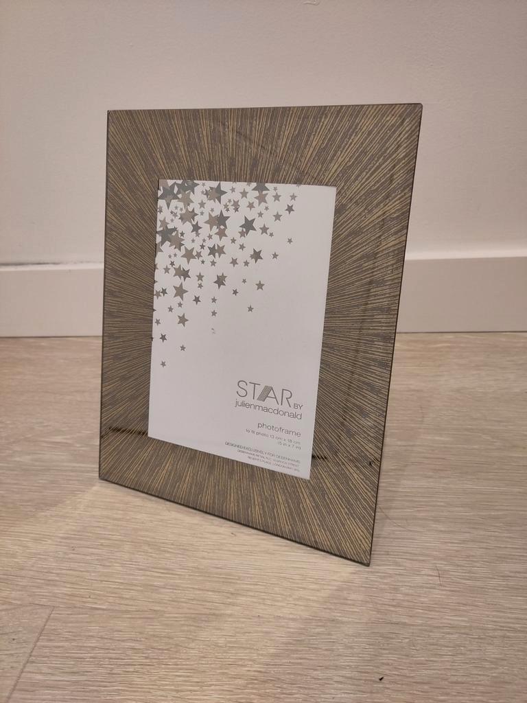 Fotolijstje om neer te zetten. Het heeft een weerspiegelende lijst. Voor een foto van 13 x 18 cm (binnenkant lijst is meer richting de 12 x 17 cm). Buitenkant lijst is 21 x 26 cm. Alleen beschikbaar o