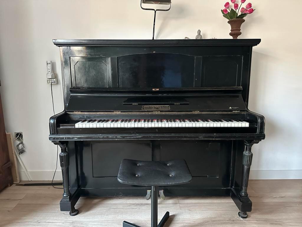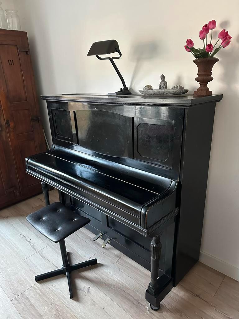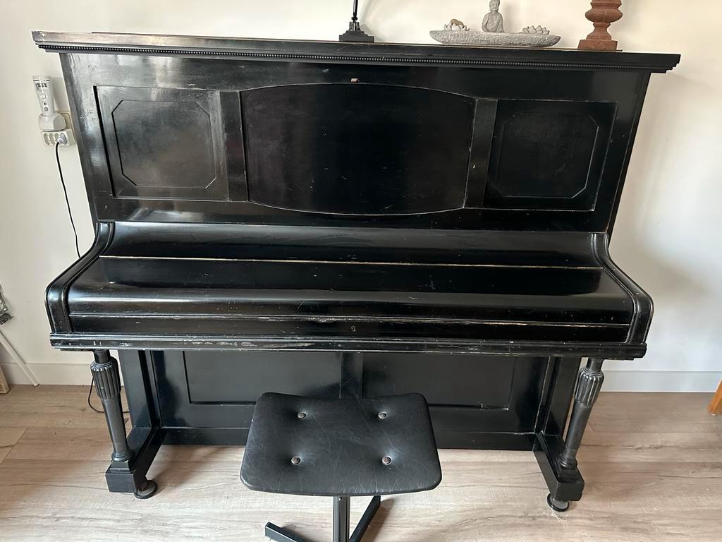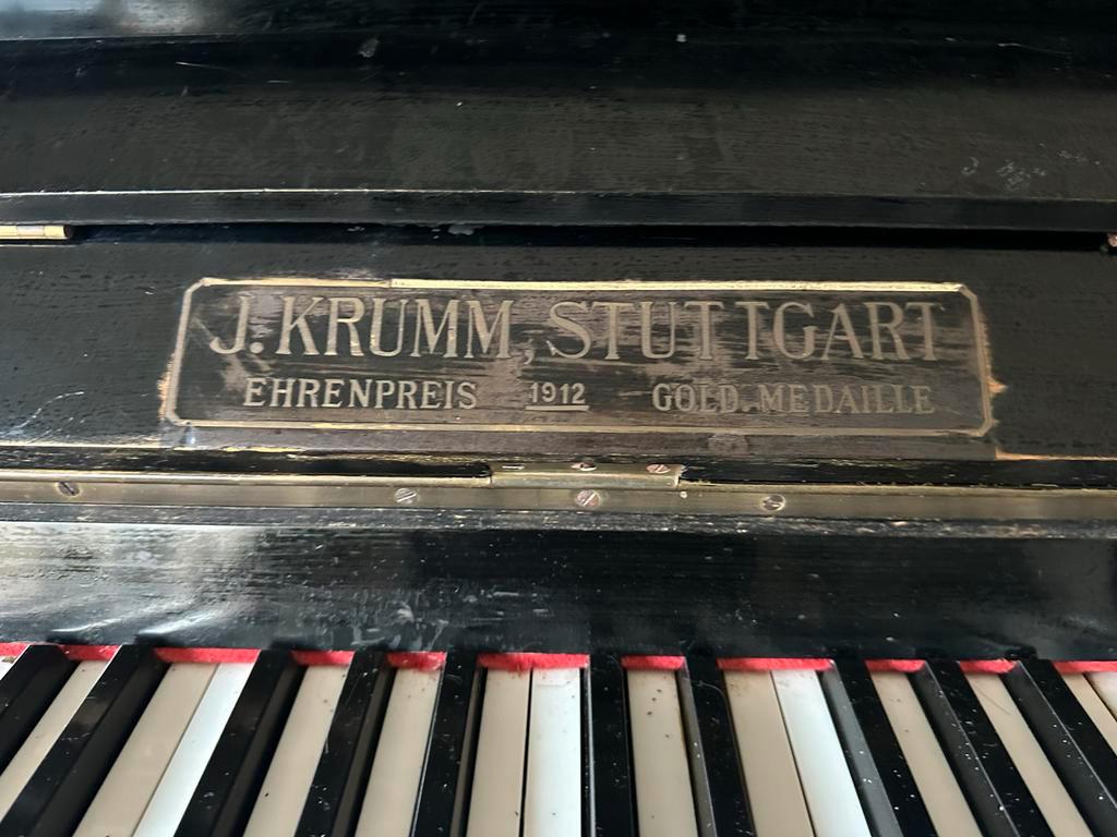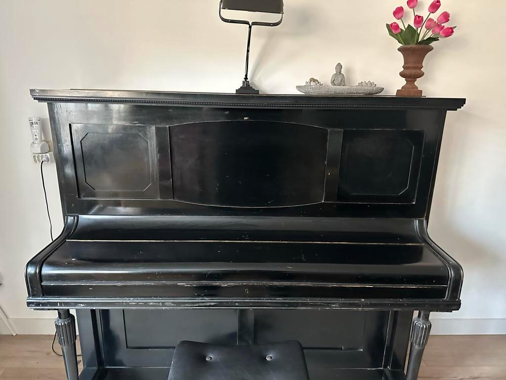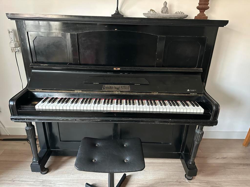Antieke piano van het merk j. Krum stuttgart. Een mooi en decoratief instrument dat helaas niet meer past. De piano is 135cm hoog, 155cm breed en 70cm diep. Hij staat op de begane grond, dus makkelijk