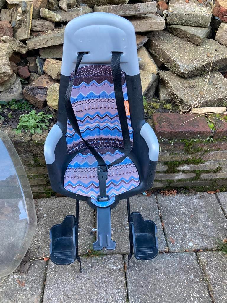 Gebruikt achterzitje voor een fiets. Het zitje is compleet met bevestigingsmateriaal, waardoor het eenvoudig te monteren is op de zadelbuis van de fiets. Ideaal om je kind veilig mee te nemen tijdens