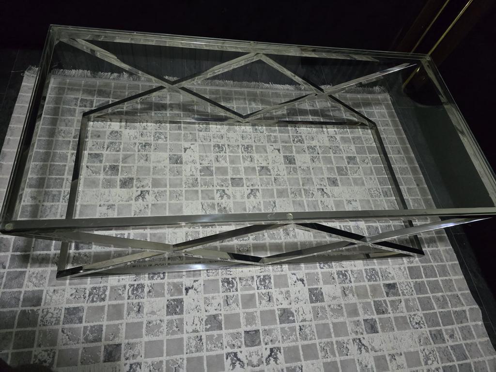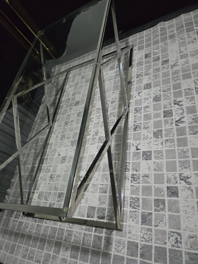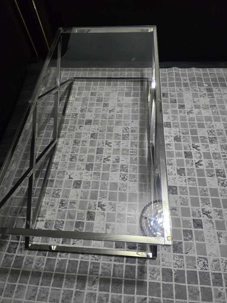 Glazen tafel hoogte is 40cm en breedte is 60cm en lengte is 120cm