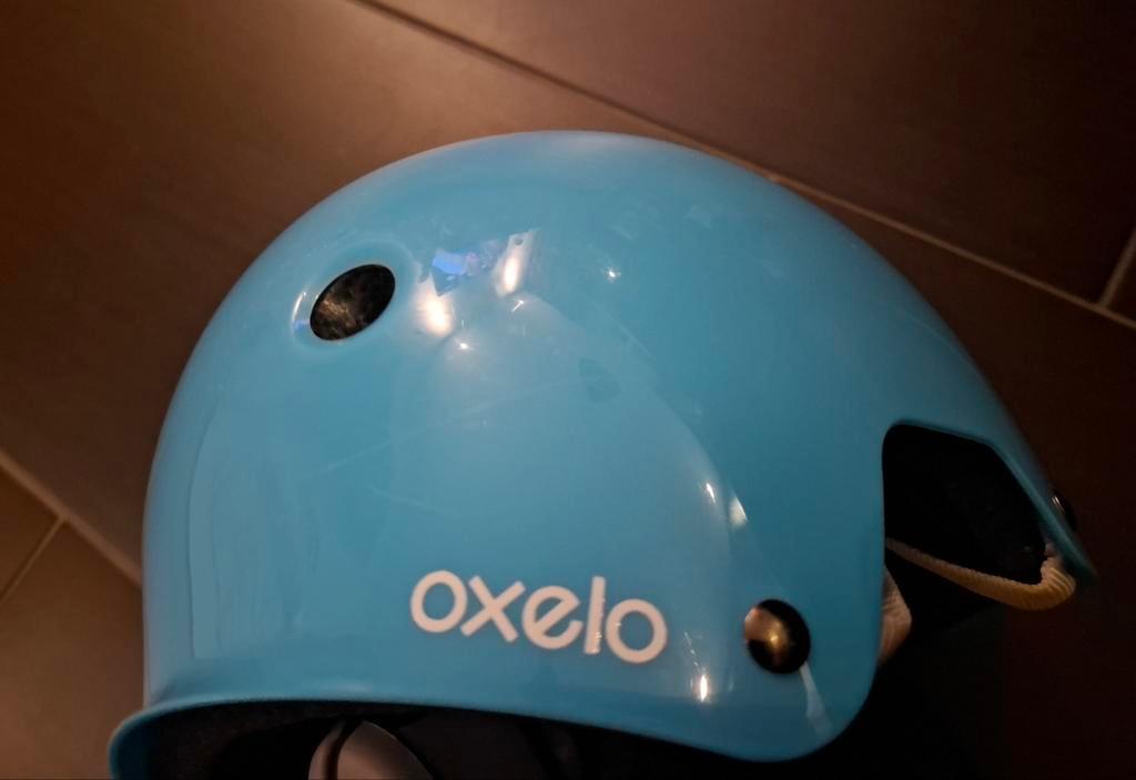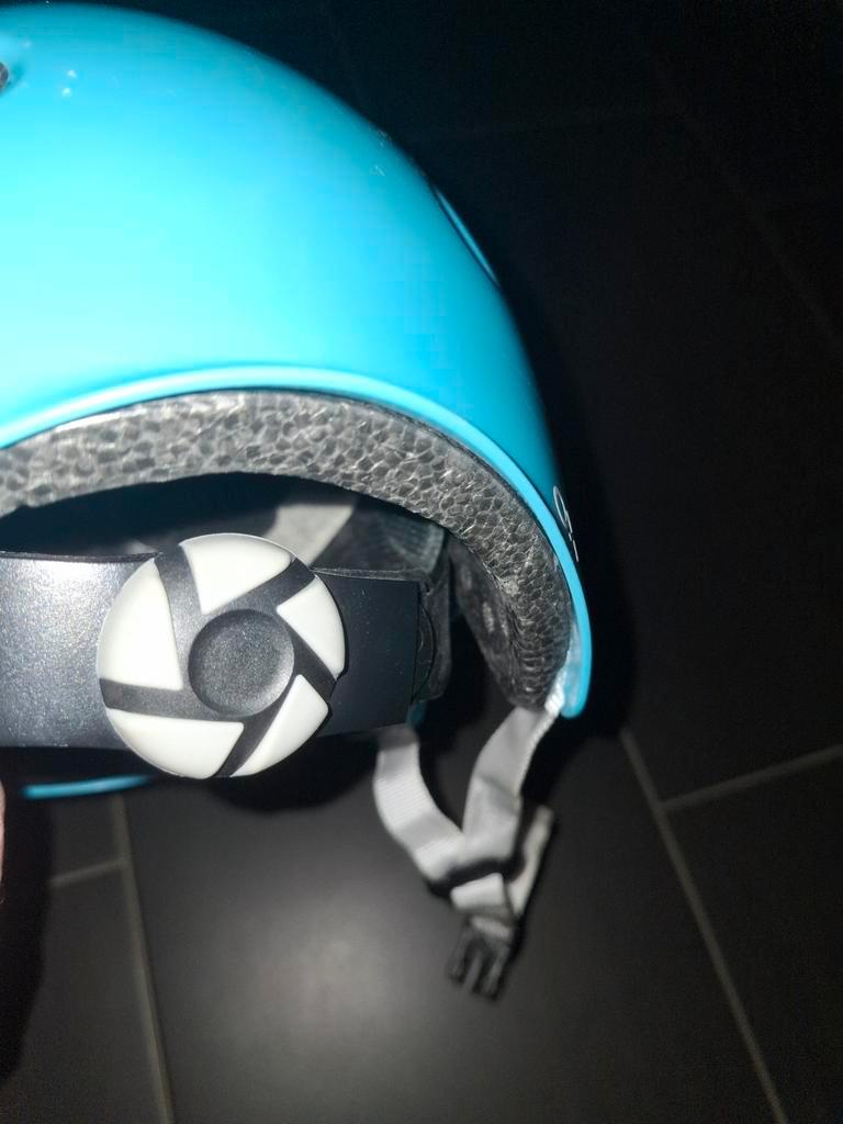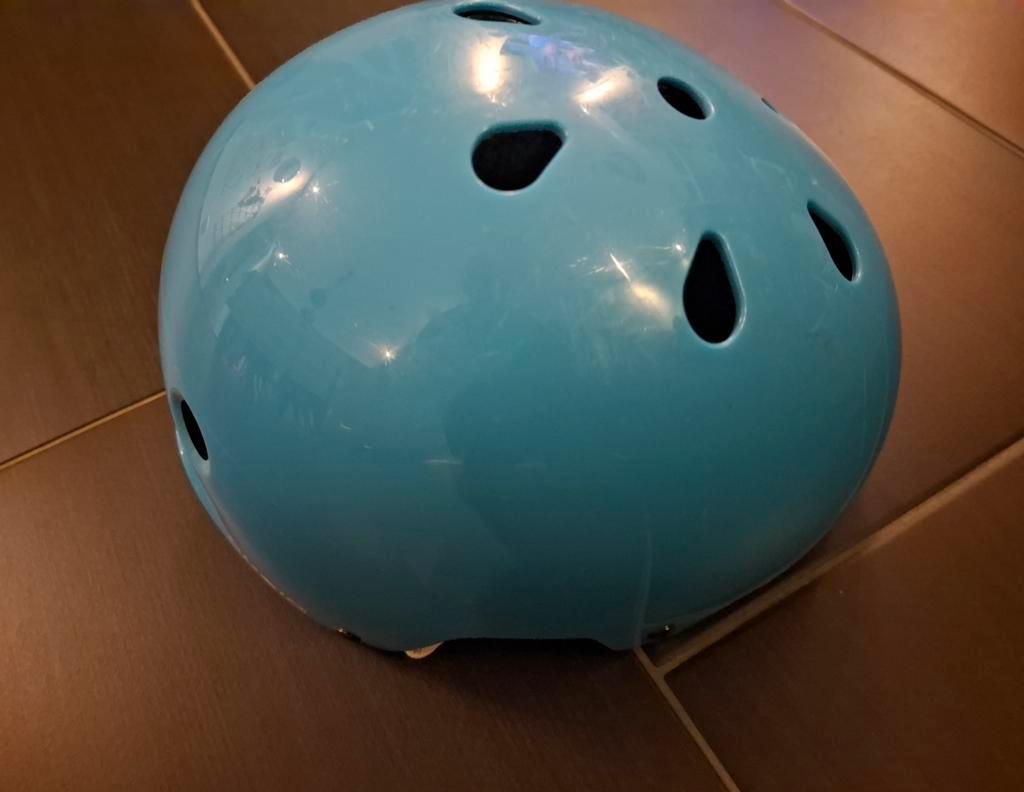 Mooie helm in de maat 50 /54 . Verstelbaar aan de achterzijde en ook het bandje wat onder de kinderen vast geklikt kan worden.