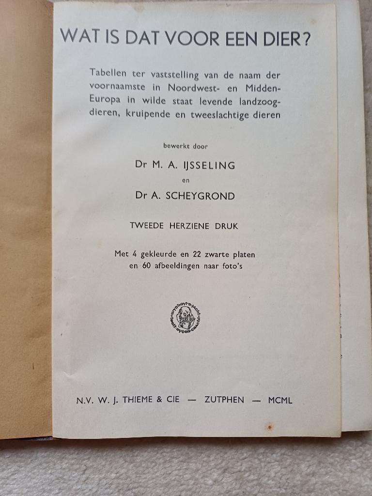 Wat is dat voor een dier? Tabellen ter vaststelling van de naam der voornaamste in noordwest- en midden europa in wilde staat levende landzoogdieren, kruipende en tweeslachtige dieren. Dr. M.a. Ijssel
